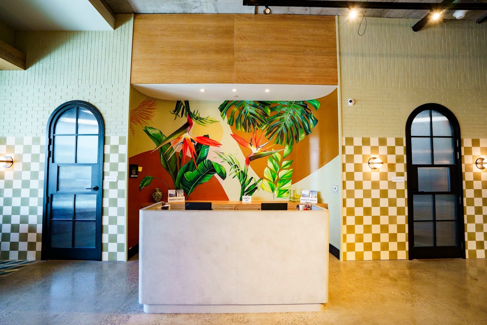 Throughout the hotel, guests will find design elements that reflect the energy and vibe of St. Pete, including Flordia-centric beach decor combined with a touch of midcentury modern flair. In the lobby, be sure to check out an Instagram-worthy mural by Tampa-based painter Ashley Cassens and a design-forward mirror by local artist Ted VanCleave.