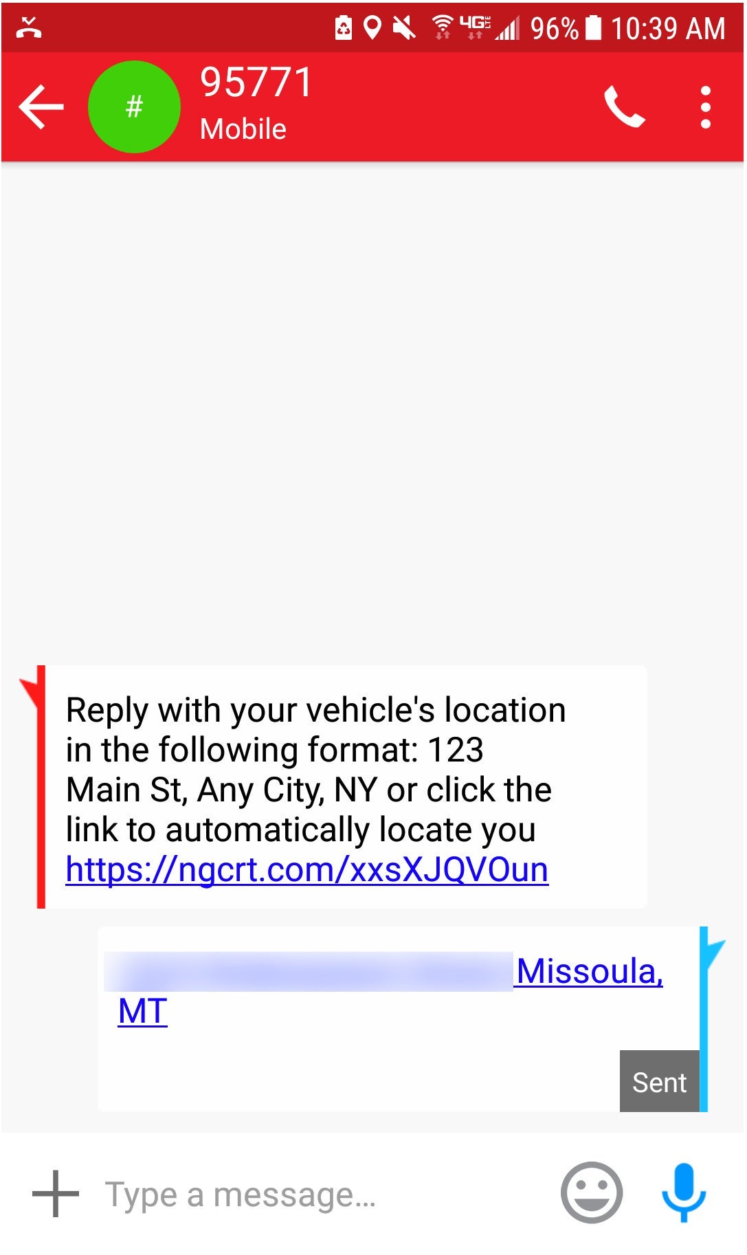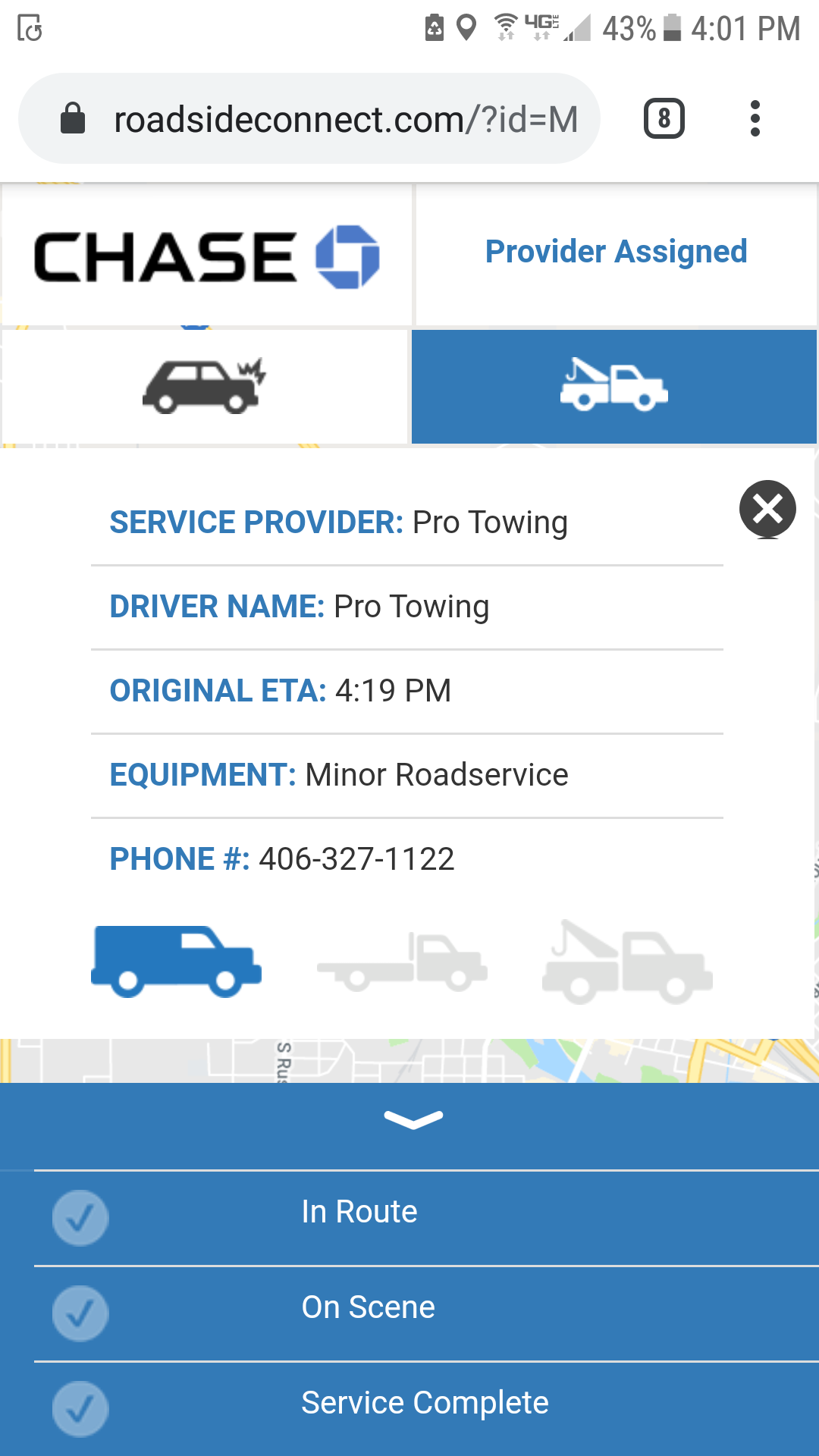 By clicking the link, I was able to see the details of the service requested -- my location, reference number and the type of service requested.