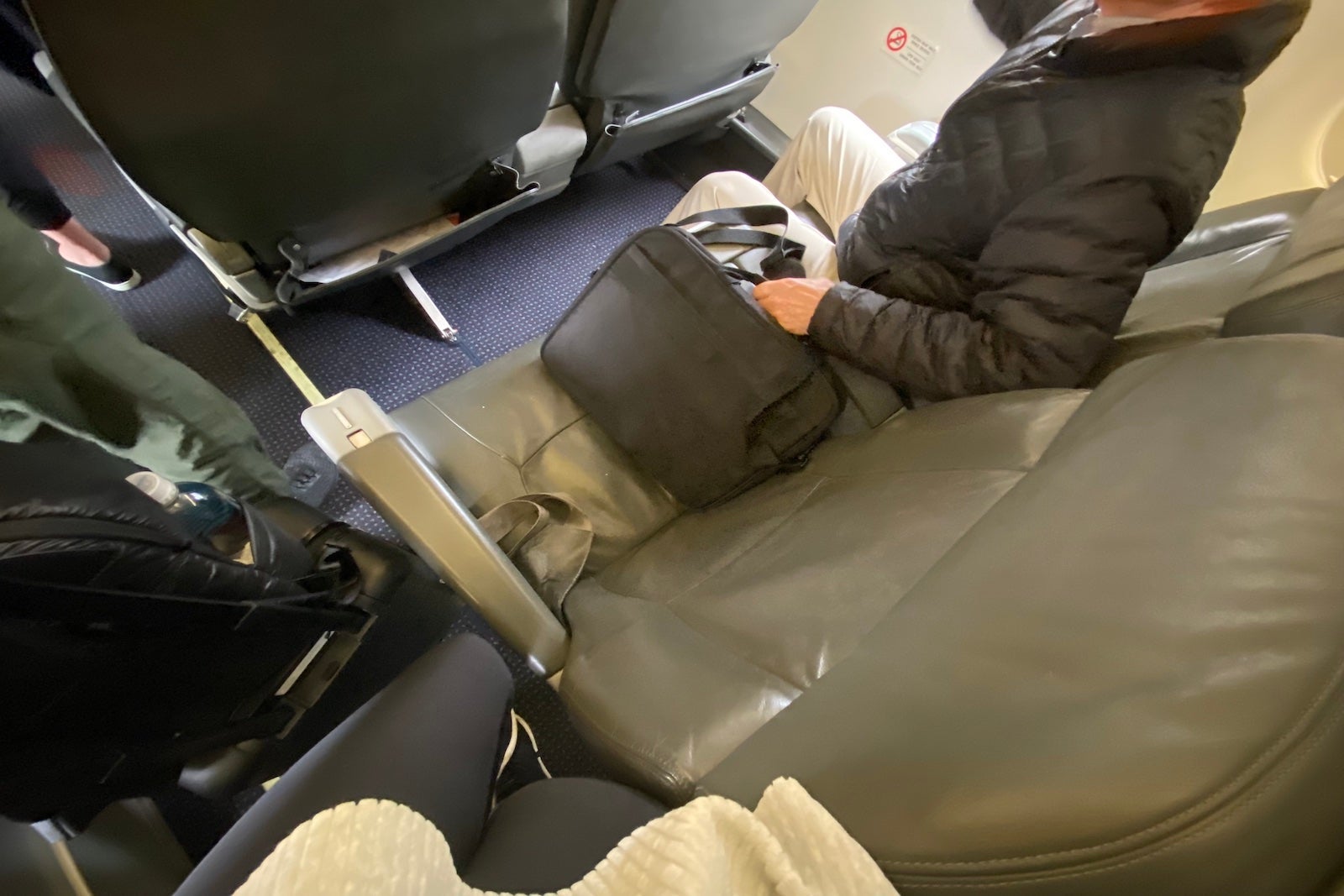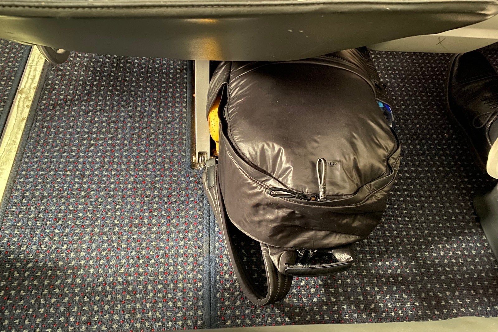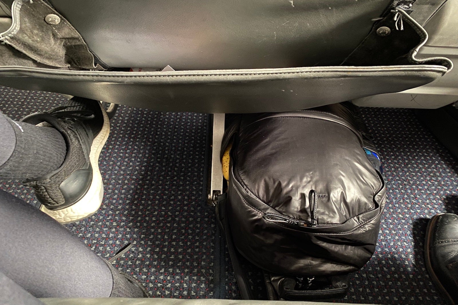 Even though I noticed the extra seat space and legroom, there were two areas where I could've used more space. That included room for my backpack, which did not fit comfortably underneath the seat in front of me thanks to a metal divider essentially halving the amount of usable space. As a result, I ended up putting my backpack in the overhead bin so as to not disturb my legs or my seatmate, a retired Delta pilot.