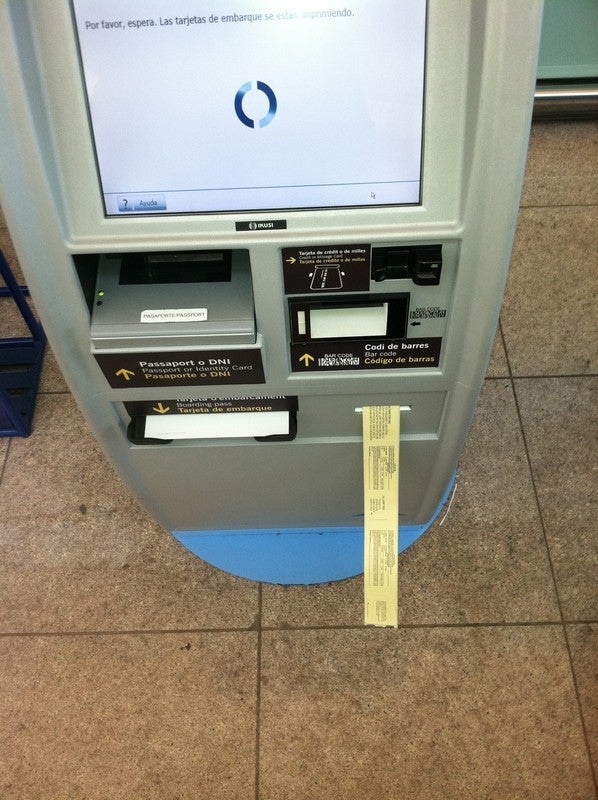 1) Flying Spanair, the kiosks actually printed your luggage tag, so you could do it yourself - pretty nifty.