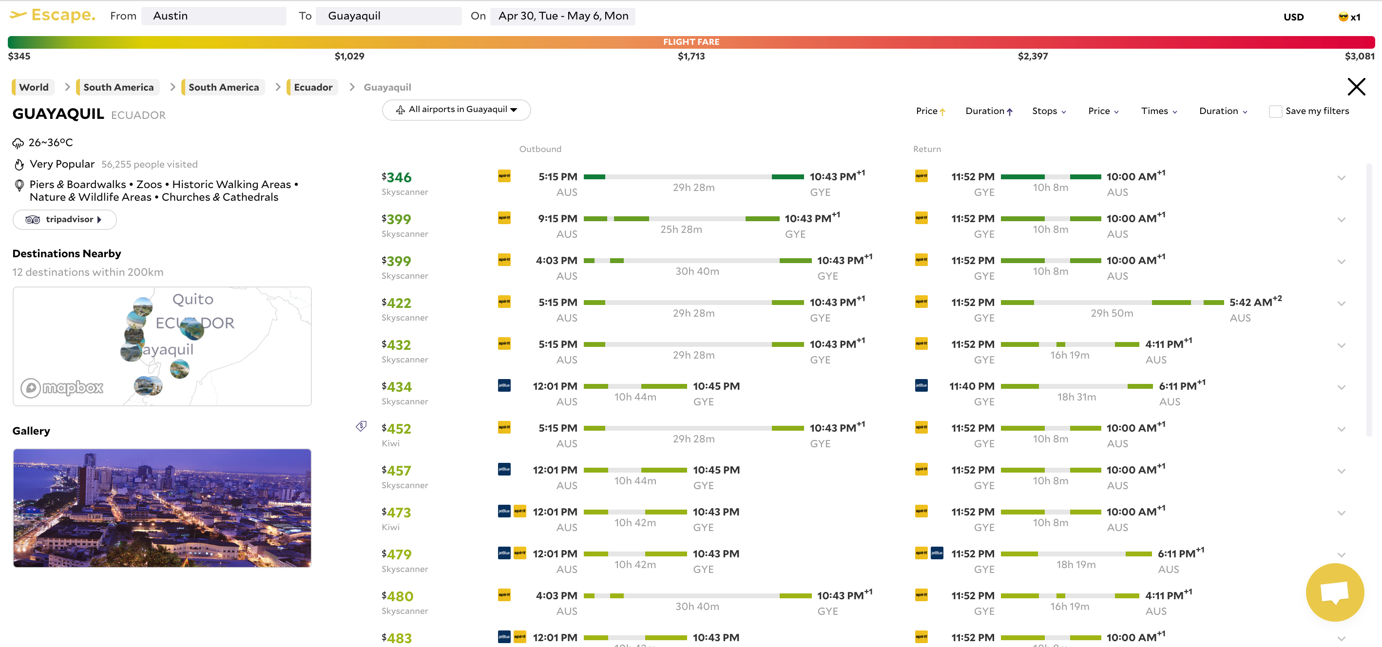 Currently, Escape only has access to flight search results from Skyscanner and Kiwi, but the team does have plans to add more partners.
