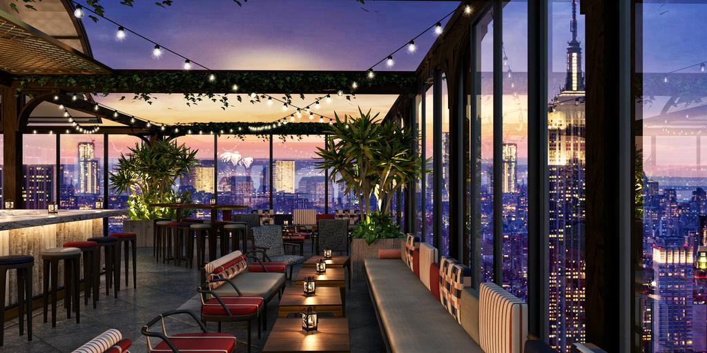 Three Interesting Facts: 1. Marriott's peppy millennial brand comes to Times Square with a super-sized 600+ footprint on 36th and 7th. Moxy's brand touch-points include fast, free Wi-Fi, complimentary coffee in the lobby living room, activated social spaces and flexibly formatted rooms. 2. Designed by Yabu Pushelberg, the Moxy's rooms have a variety of different set-ups, from a conventional queen beds to quad bunks and toe-to-toe doubles. The spaces are built to change with your needs — tables and chairs, for example, can be collapsed and hung up on pegboards to create additional floorspace. 3. The hospitality company behind TAO handles all the F&B, including the rooftop Magic Hour, where you'll find mini-golf, a carousel, funhouse mirrors, oversized animal topiaries and skyline views.