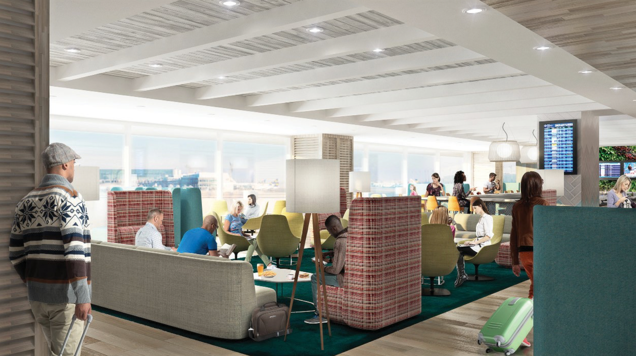 The lounge will be designed with a West Coast flare and feature an open buffet and bar. It'll also feature a conference room, luggage room, private bathrooms and showers, kids' zone, sleeping area and complimentary Wi-Fi.