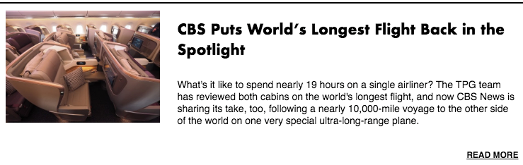 Aside from the design — part of which I'm going to share in a moment — the biggest change is that this newsletter is curated, often by yours truly. Our editorial team will be handpicking the stories you'll see each day, including a mix of points and miles content and general travel industry news.