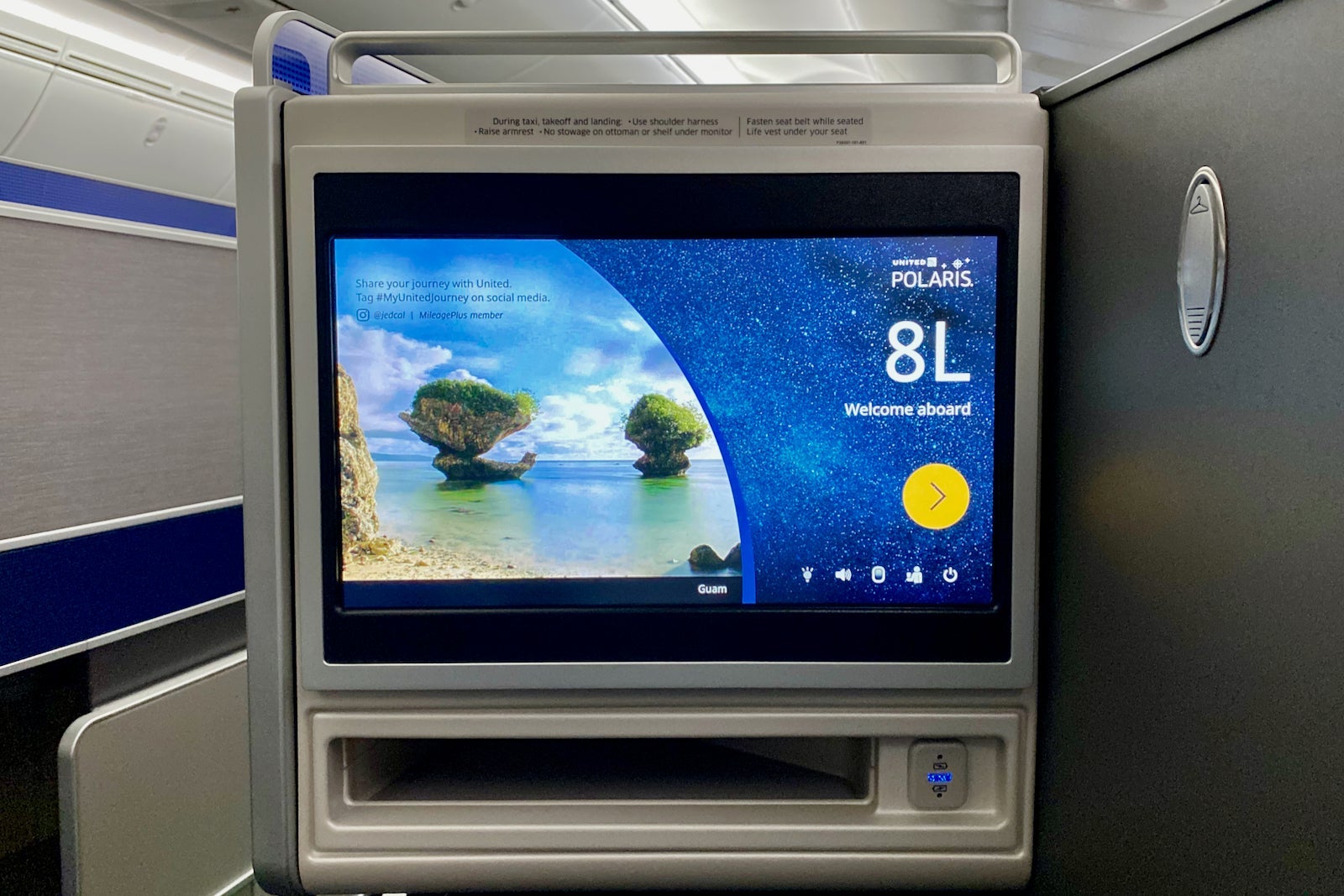 Each seat has a 16-inch HD entertainment screen, AC outlet, USB port and enclosed storage compartment.