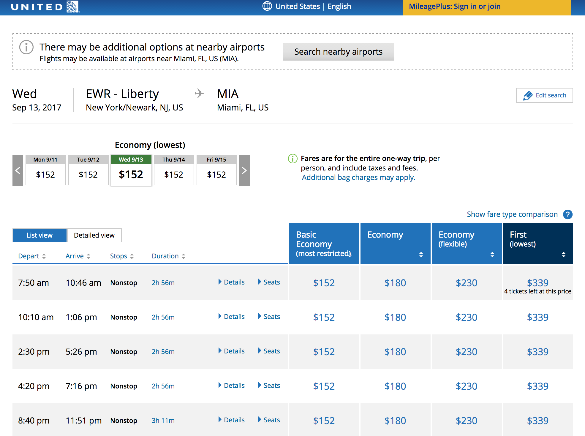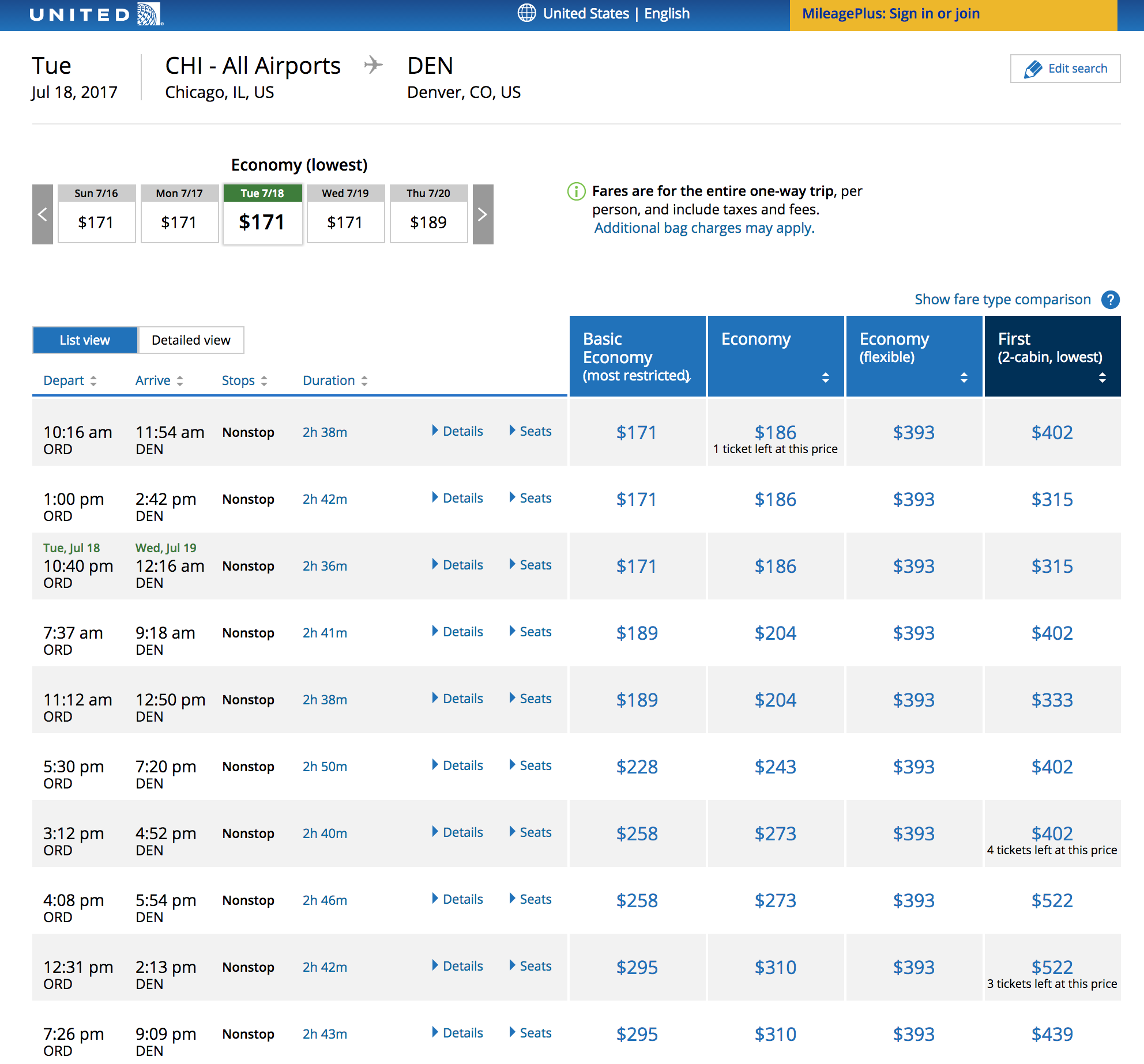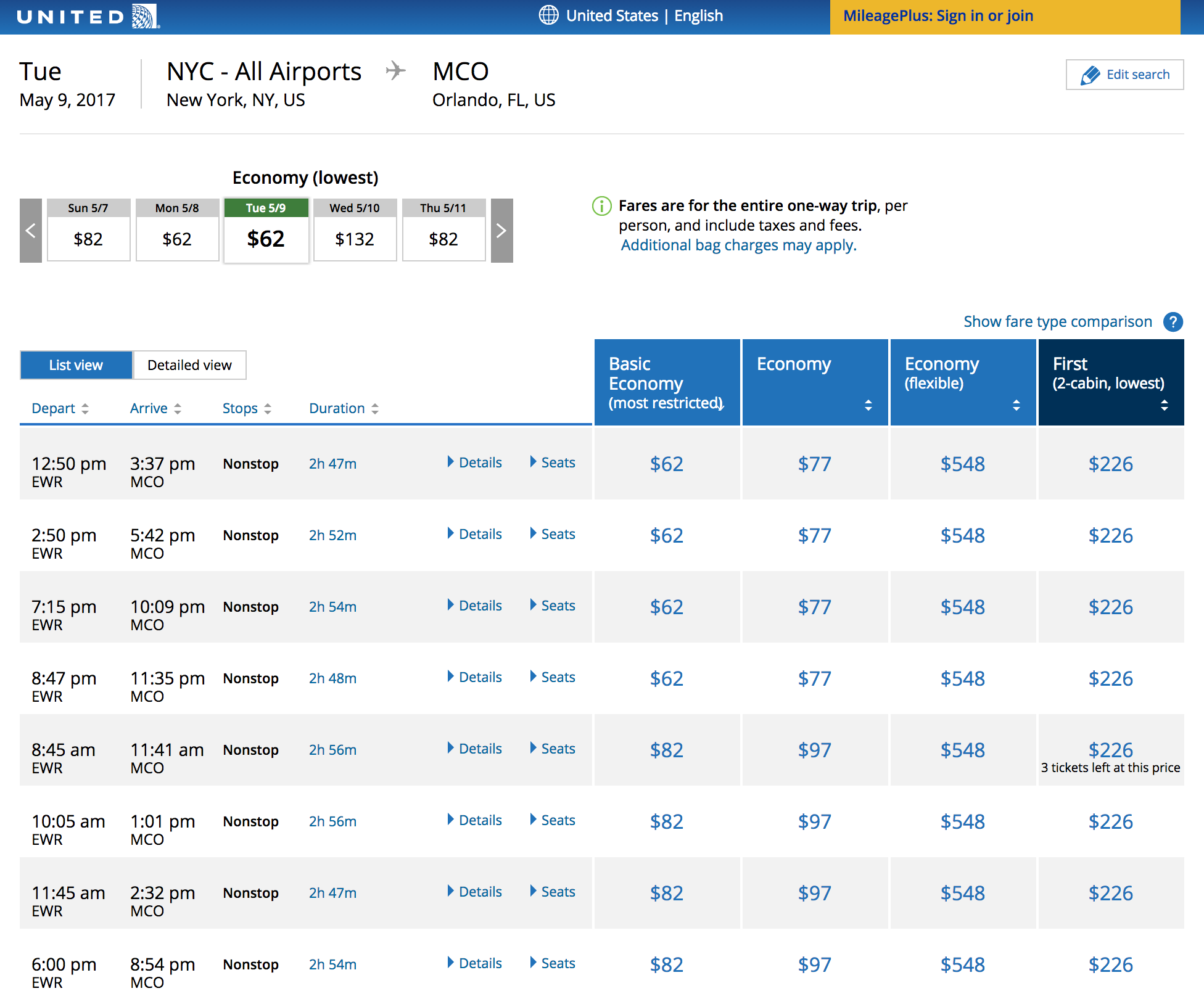 The new BE fares appear on many leisure routes between United hubs and other cities for travel dates beginning May 9, 2017. We've reached out to United to clarify which routes now feature a Basic Economy option, but we have yet to hear back. For all of the new routes we've found, the maximum savings you'll get on every ticket from the next-lowest economy fare is exactly $15 (with the exception of one — $28 on EWR-MIA).