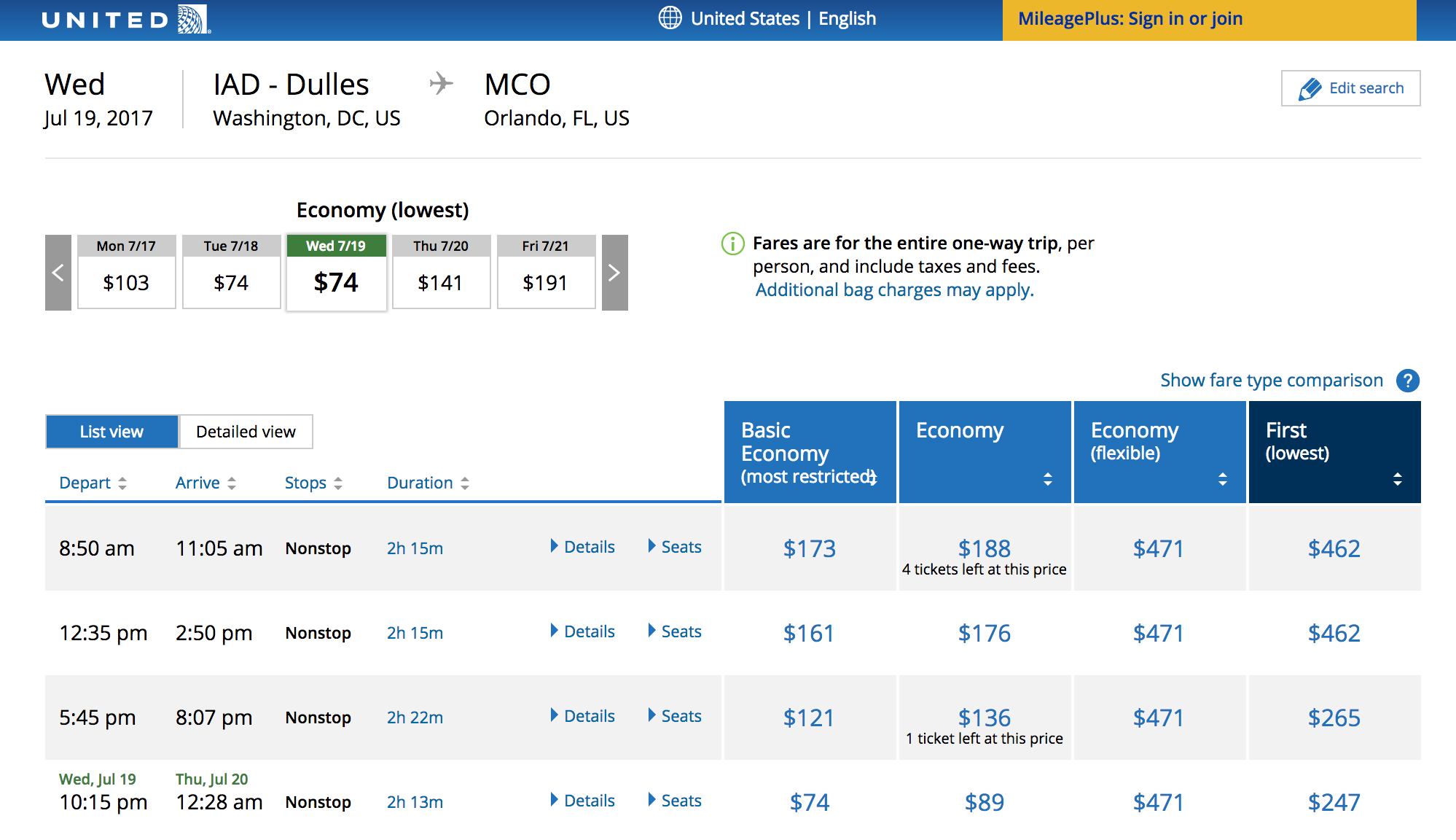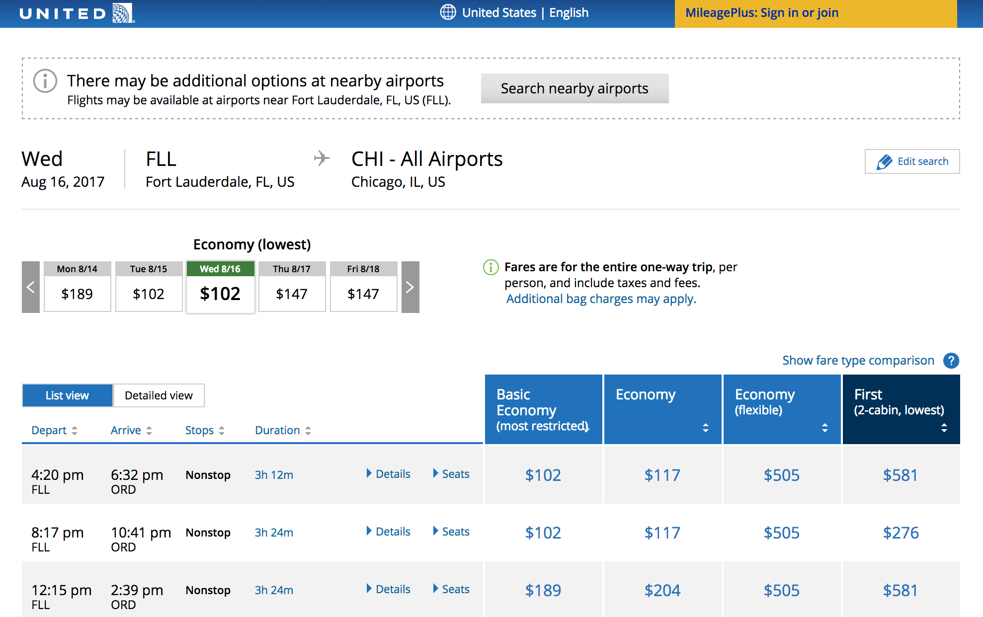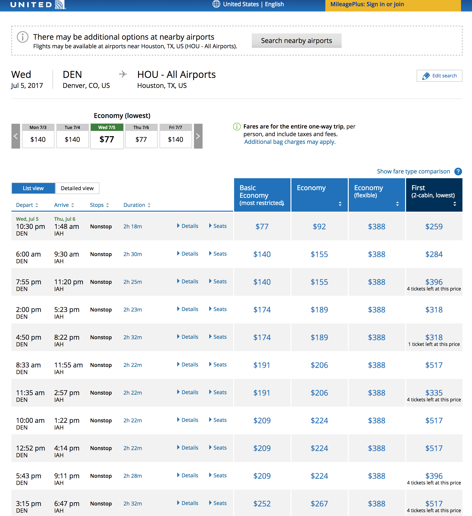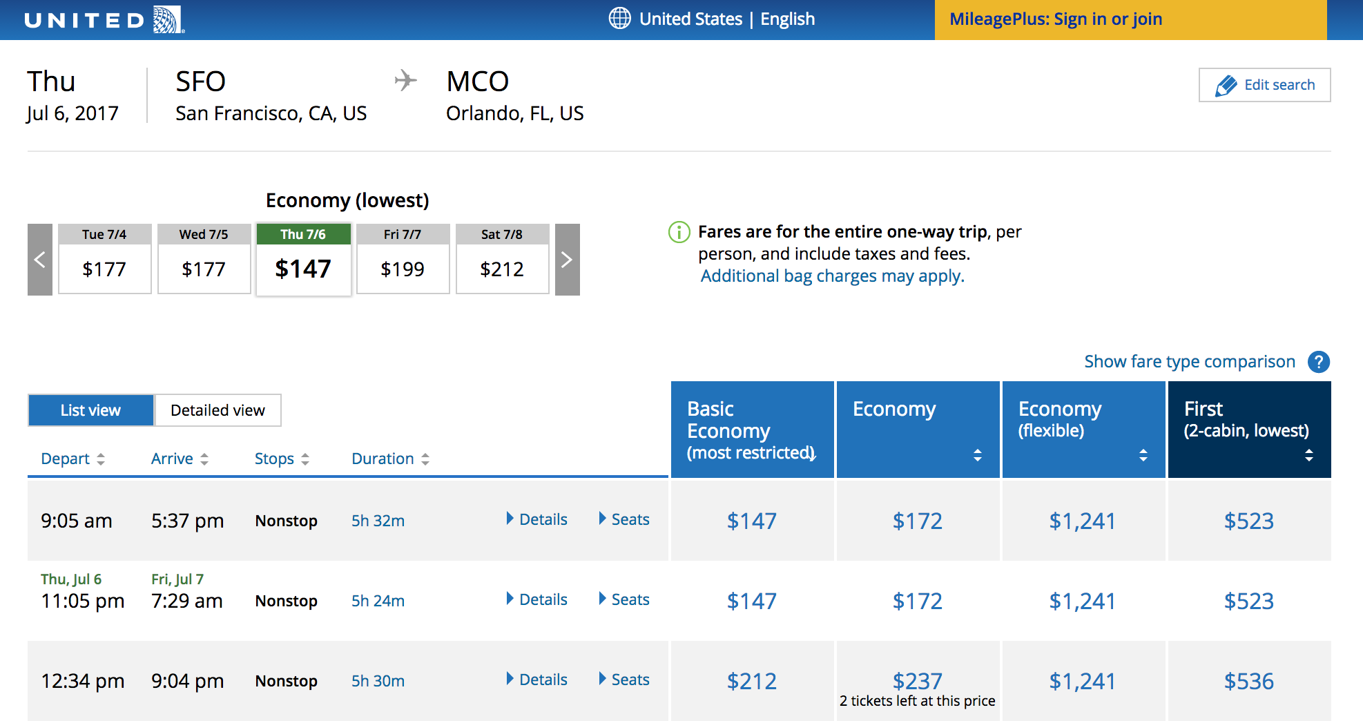 The new BE fares appear on many leisure routes between United hubs and other cities for travel dates beginning May 9, 2017. We've reached out to United to clarify which routes now feature a Basic Economy option, but we have yet to hear back. For all of the new routes we've found, the maximum savings you'll get on every ticket from the next-lowest economy fare is exactly $15 (with the exception of one — $28 on EWR-MIA).
