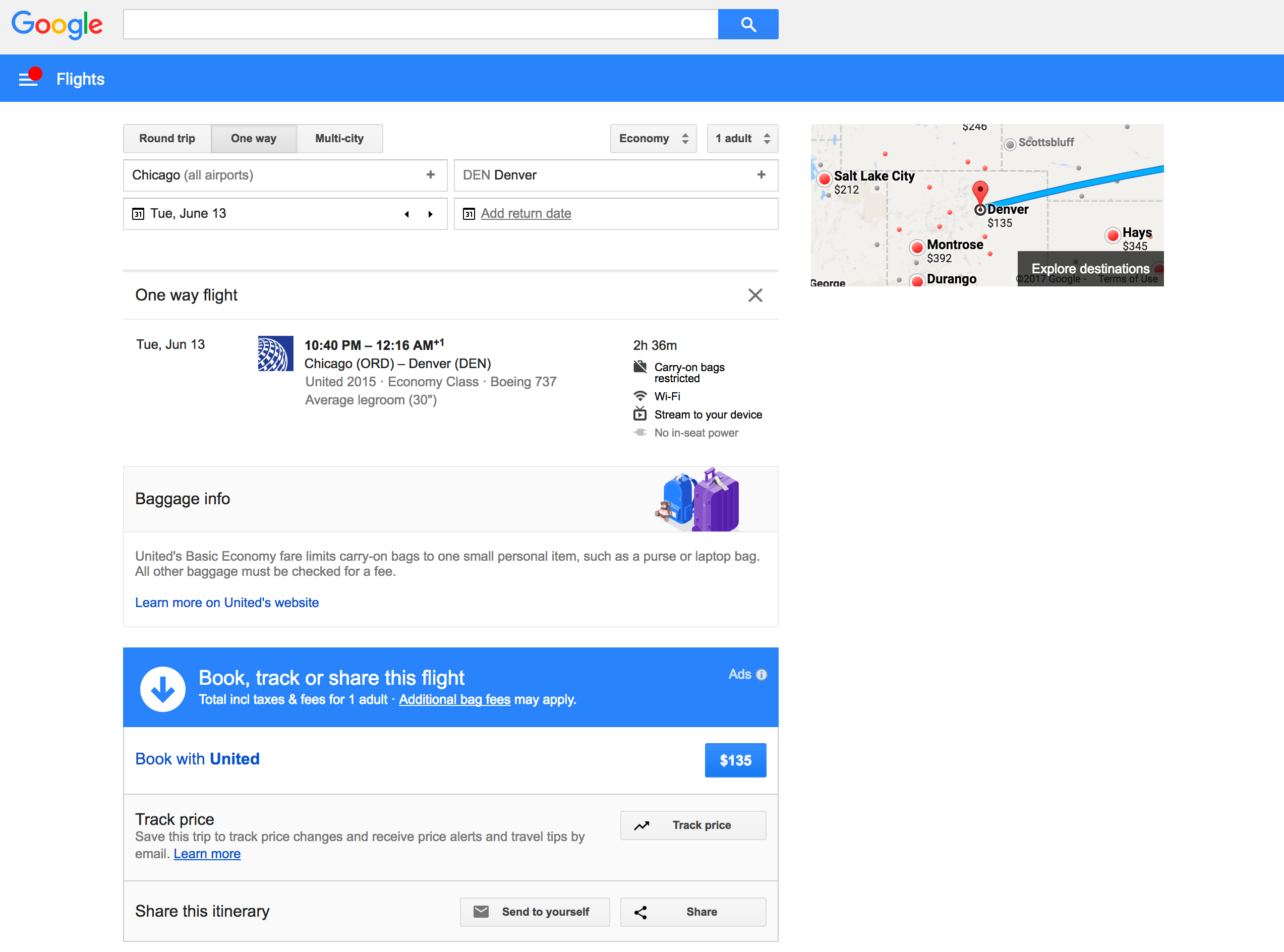 As a reminder, Google Flights will tell you if you're selecting a Basic Economy fare. When you search for and select a fare, you'll see a notification from Google Flights that carry-on baggage is limited: