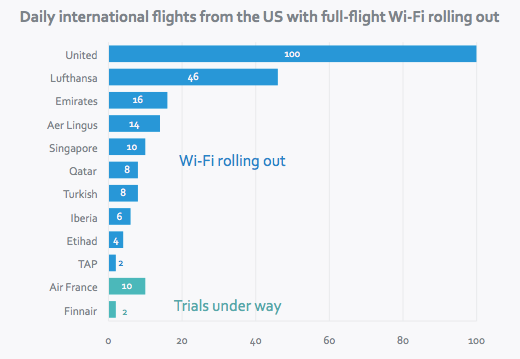 In fact, Lufthansa's service to Munich and Frankfurt add up to 30% of the international WiFi heading out of the US, with shorter flights to Montreal and Toronto adding up to another 25%.