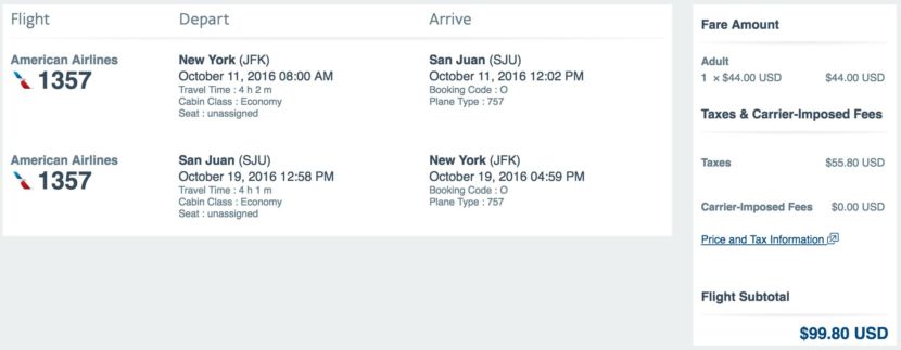 New York (JFK) to San Juan (SJU) for $100 round-trip in October: