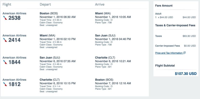 Boston (BOS) to San Juan (SJU) for $107 round-trip in November: