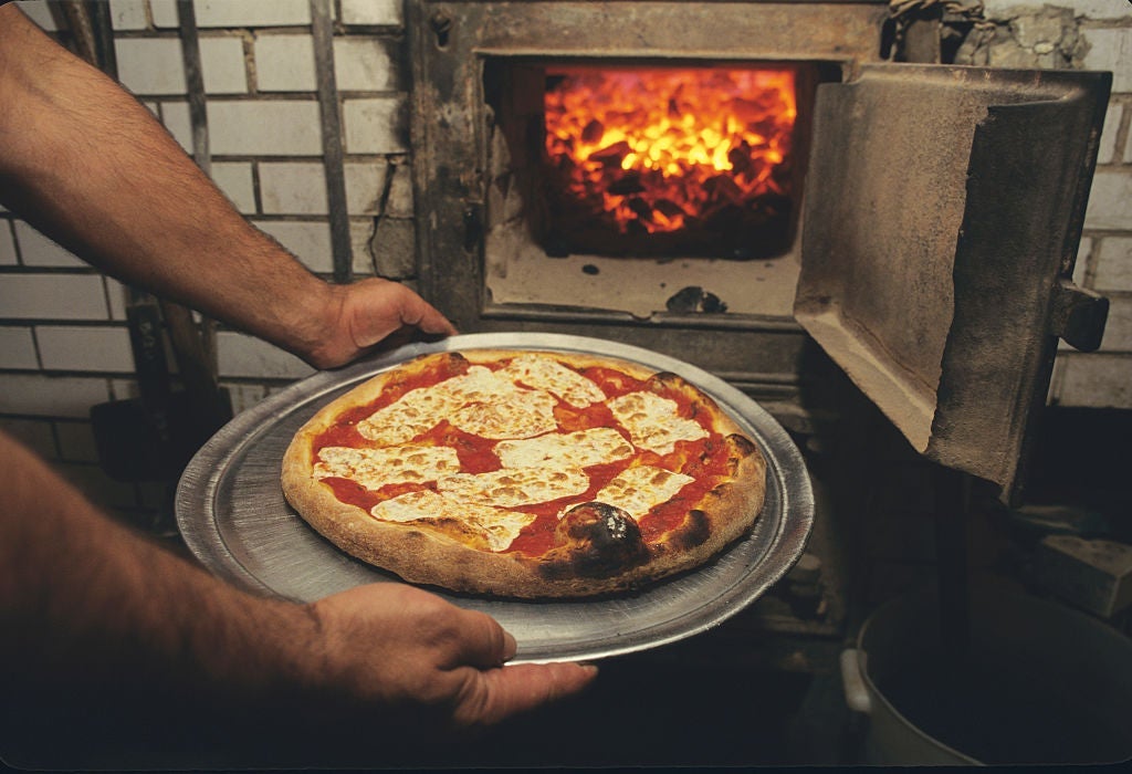 The other one involves Patsy Grimaldi, who opened a pizzeria called Patsy's at the foot of the Brooklyn Bridge in Dumbo. Grimaldi's uncle had worked at Lombardi's, founded in 1905 as the first pizzeria in the US, and had actually started the East Harlem Patsy's Pizzeria, but that uncle had died, and in 1995 Grimaldi found himself sued by the restaurant's new owners. So he changed the restaurant's name to Grimaldi's, and it won acclaim for its coal-fired pies. In 1998, however, Grimaldi sold the business to a regular named Frank Ciolli, who by 2012 had turned Grimaldi's into a 36-outlet national chain.