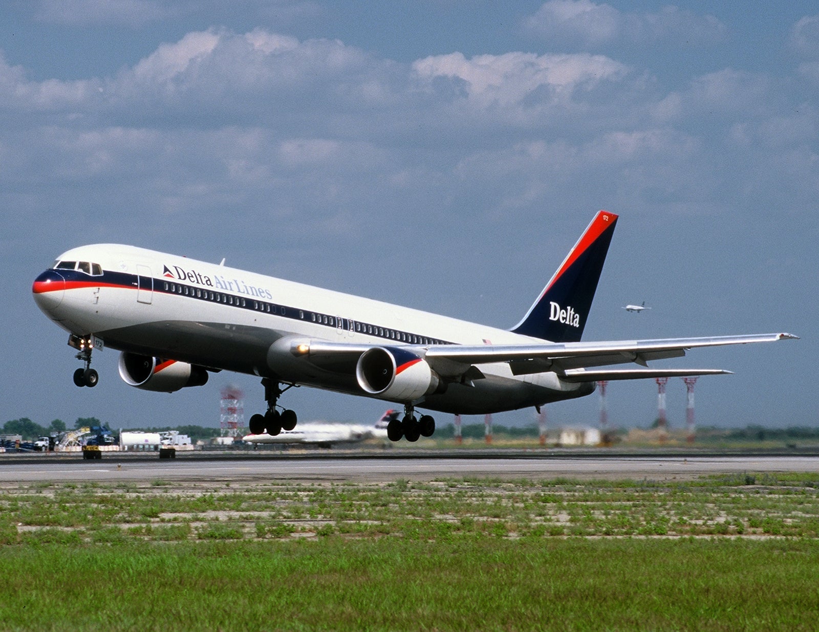 Also mostly gone from passenger service, the airplane seen below landing — the Boeing 767-200, the short model of the 767 workhorse. While the "-200" may be gone, the 767 lives on at American, Delta and United, all of which have newer versions of the jet in their fleets.