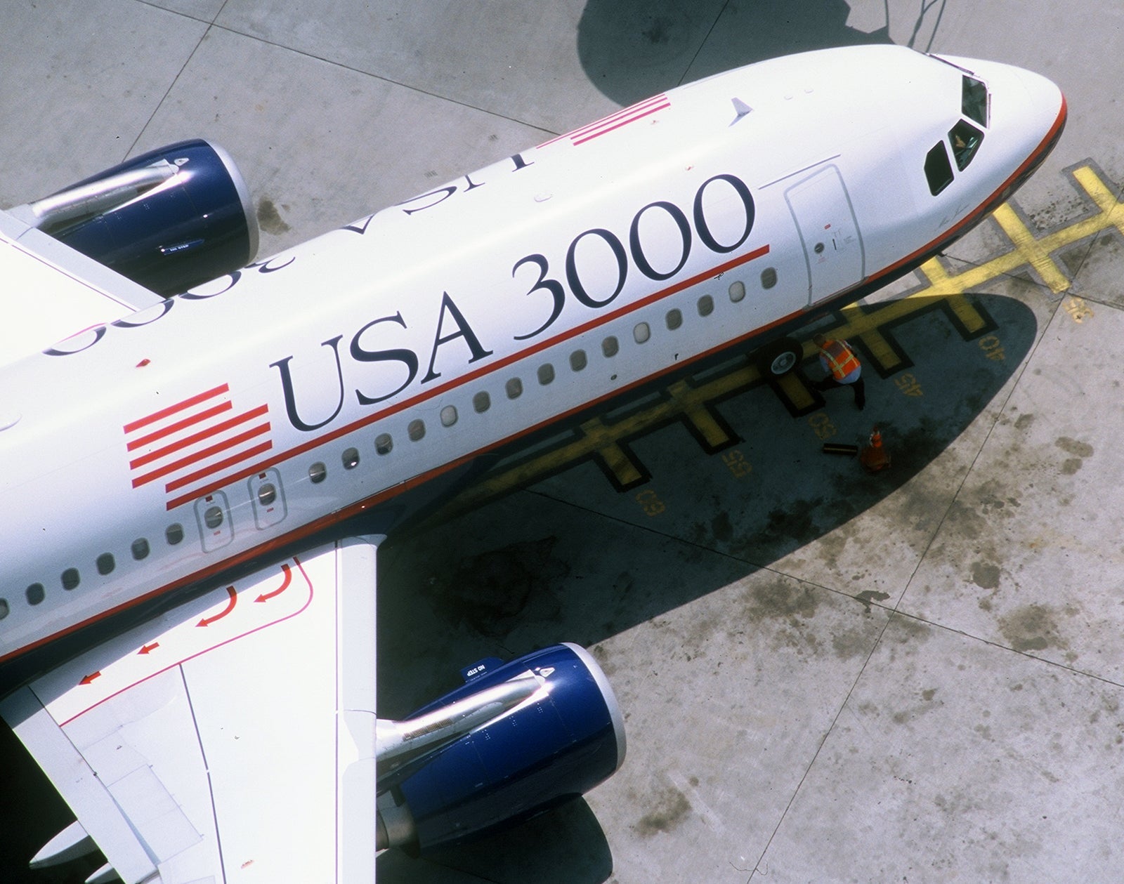 If you don't remember USA 3000, you are not alone. A small airline that operated, at its biggest, a dozen Airbus A320s, it existed from 2001 to 2012. One of those Airbuses is seen below docking at Terminal 4.