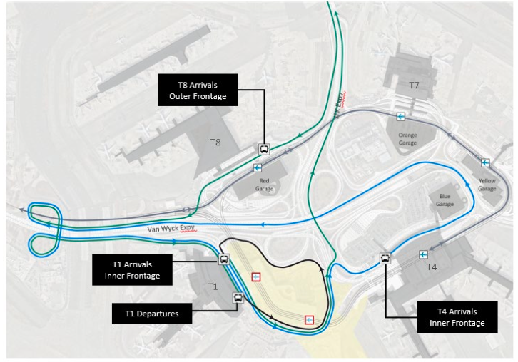 With multiple terminal redevelopment projects underway, the Port Authority is adjusting traffic patterns to make room for construction. This will lead to roadway closures, relocated Uber/Lyft and taxi pickup areas, and changes to the AirTrain system.