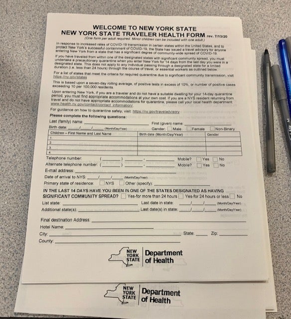 Anyone who spent more than 24 hours out of state will need to get a COVID-19 test taken within three days of departure. On arrival in New York, they may need to show those test results and fill out the traveler form. A mandatory quarantine of three days is still required. On Day Four of quarantine, the traveler has to get another COVID-19 test. If both tests are negative, quarantine is over.