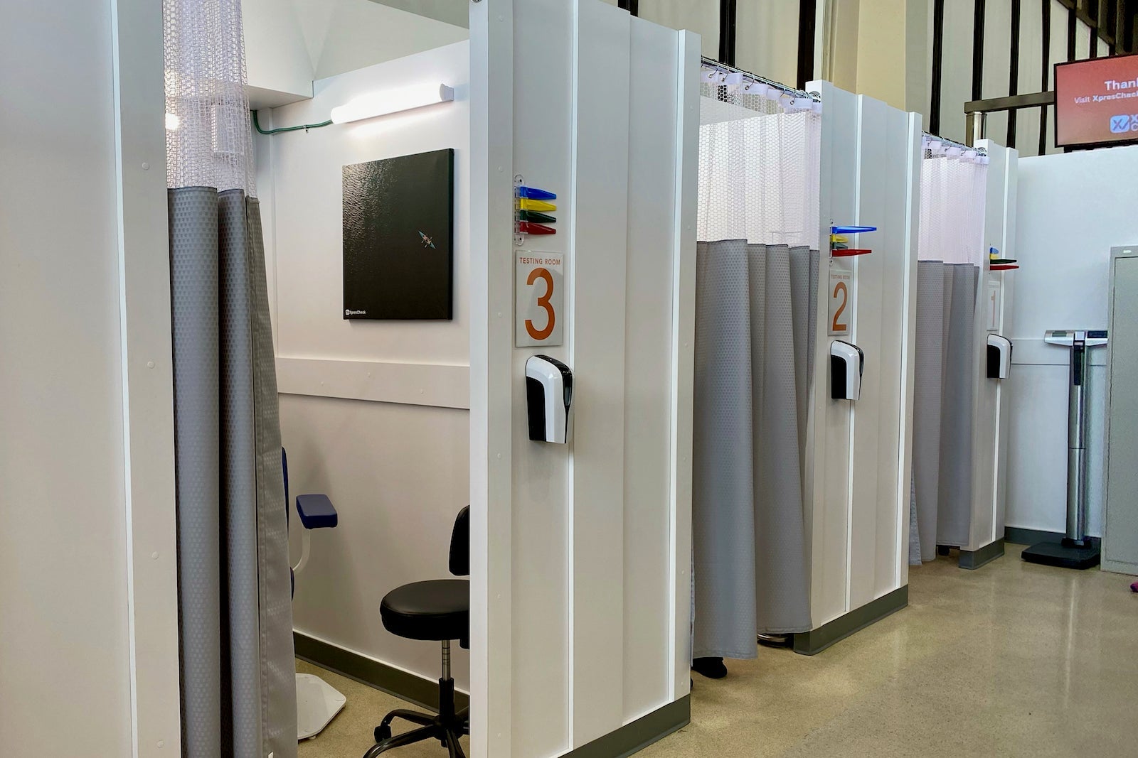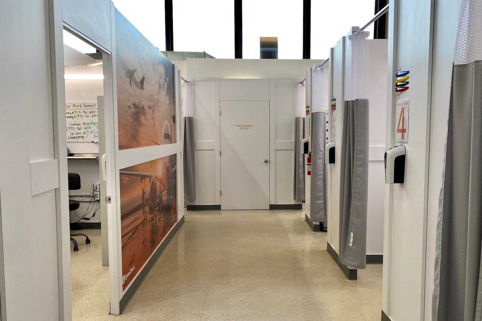 The XpresCheck location is located on the third level of Terminal B on the south side of the building. The modular site has space for up to nine private testing rooms. All visitors will have their temperatures checked before entering the testing center.