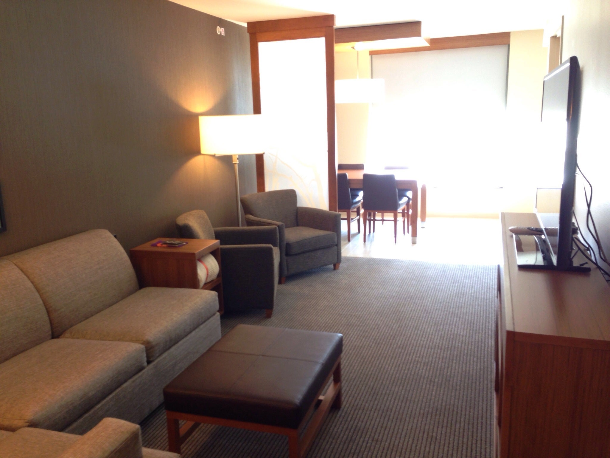All Hyatt Place rooms are pretty much perfect for families since they all have the large couch areas. Many are rated for 5, and some for 6 persons in one room, which is a big deal for traveling families, but this particular room was even better.
