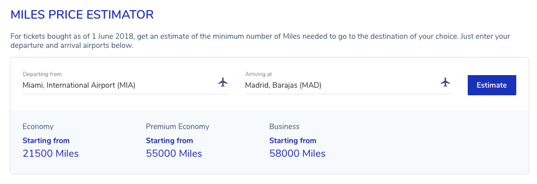Let's hope that once the Flying Blue changes go into effect in June, there are still no fuel surcharges on Air Europa and that the minimum cost of 58,000 miles displayed by the new calculator is a common price rather than the exception to the rule.