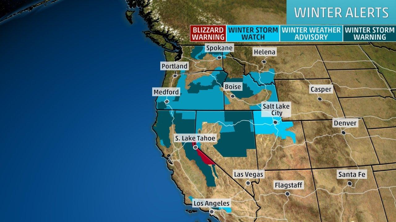 While this new bomb cyclone bears down on the Northeast, another storm is sweeping across California's Sierra Nevada mountains. Winter storm warnings have been issued across five western states, with some blizzard warnings issued for eastern California.