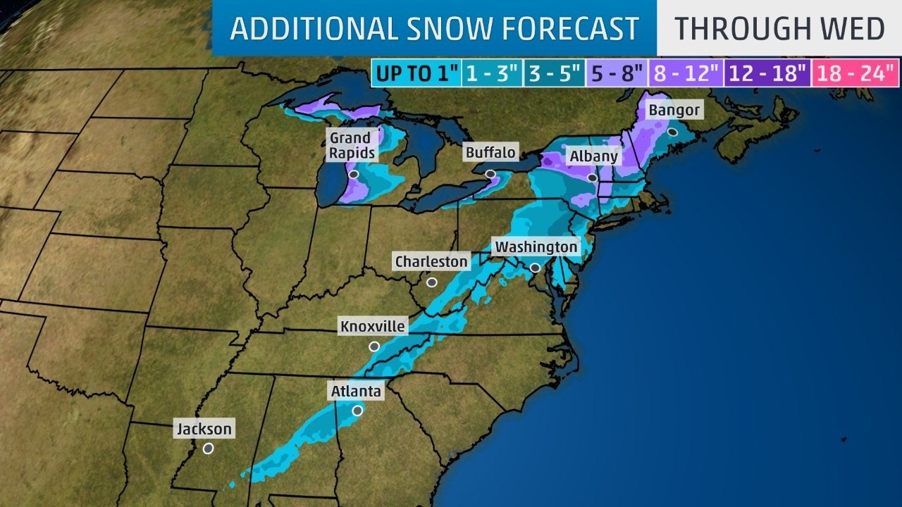 The storm has already dumped more than 15 inches in parts of the Midwest, but it's not done yet. Parts of New York are expected to get more than 12 inches of snow with parts of the Midwest and Northeast getting a widespread 8+ inches of snow: