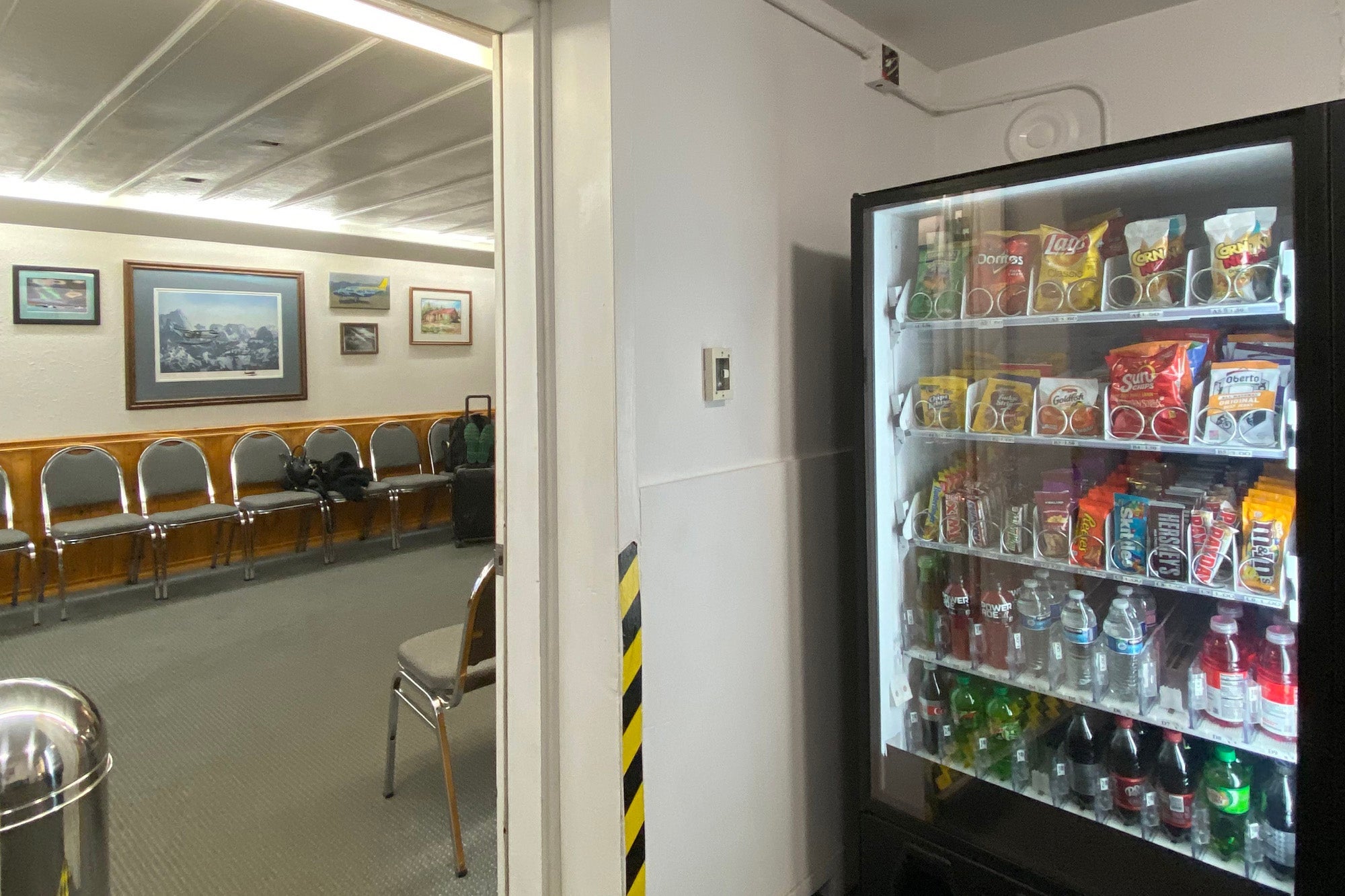 There's not much to see beyond a snack machine and nondescript waiting room, but I got a kick out of chatting with the front-desk attendant. Naturally, I was wondering if I'd have a decent shot at seeing the northern lights. Even though it was raining in Fairbanks, the skies were clear above Coldfoot, as evidenced by this live feed of the airport.