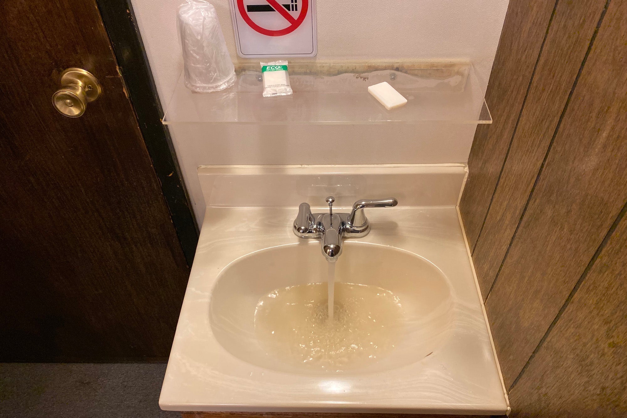 I understood that the conditions were going to be rustic — aside from the foggy water, some very light touches could go a long way to improving the aesthetic a bit, though, like wiping off some of the mold around the tray above the sink ...