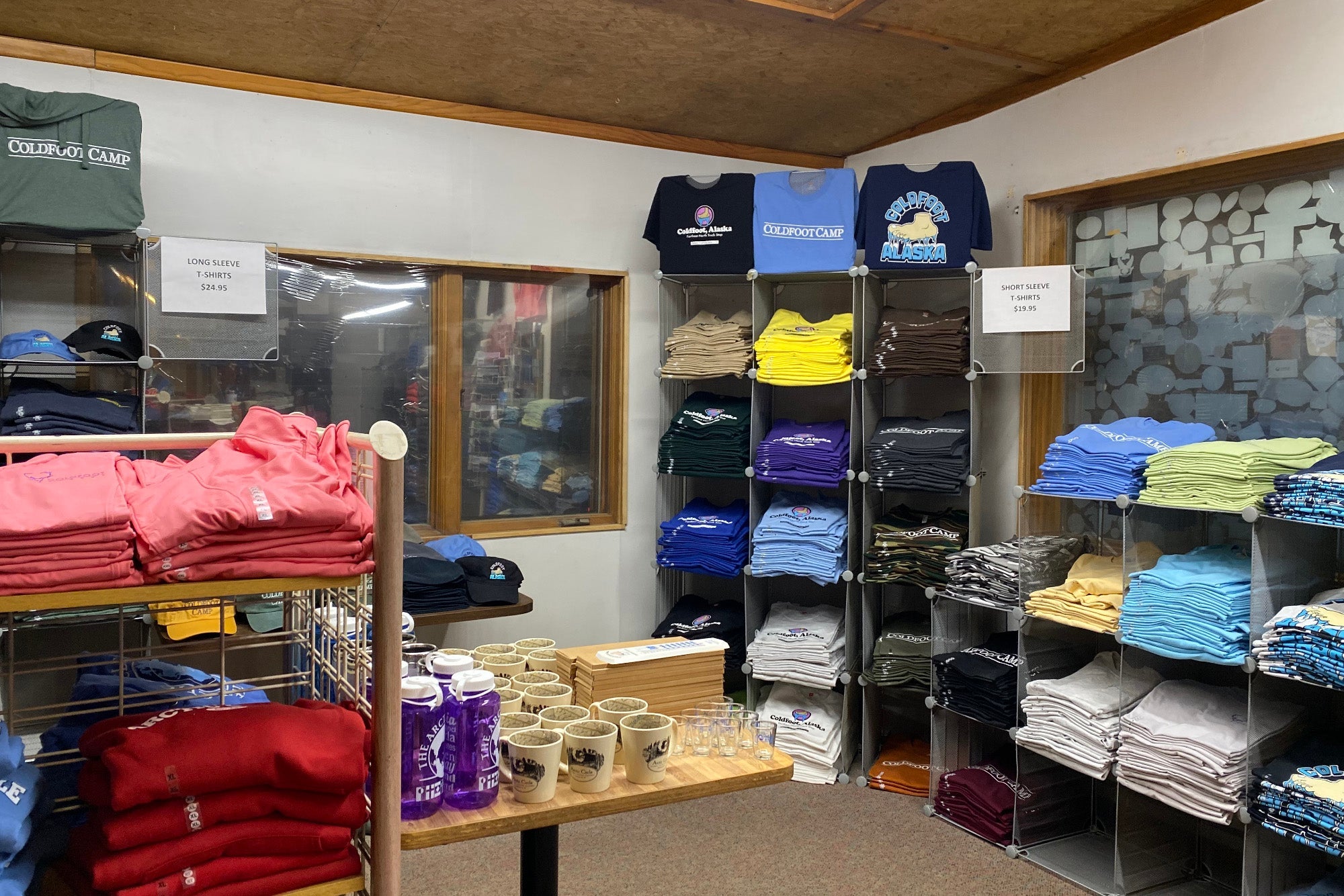 The gift shop is open to everyone, though, and there's a ton of Coldfoot-branded apparel, along with some postcards and stamps available at the main desk.