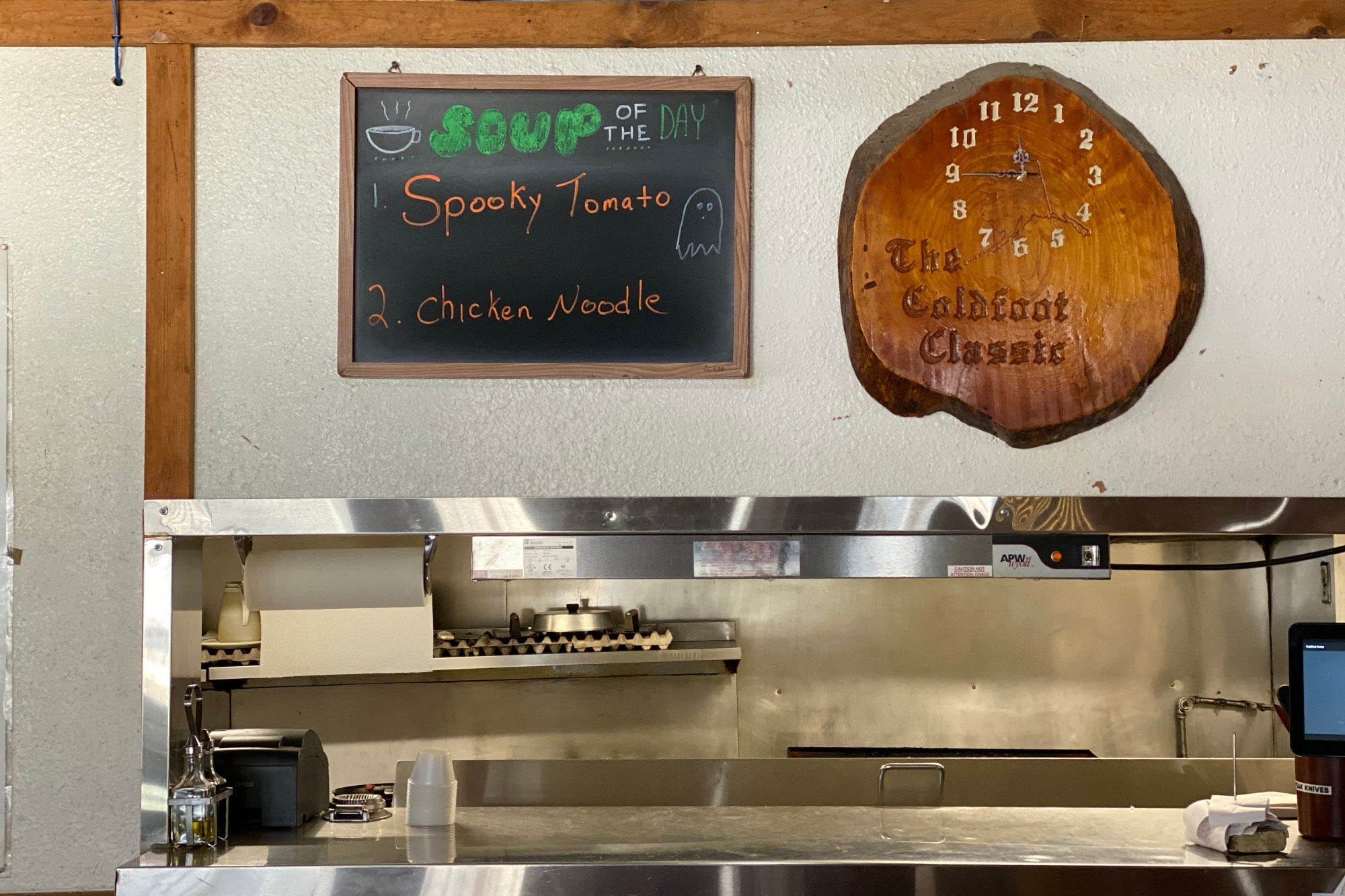 Beer is strictly prohibited in the main cafe — for that, you need to walk around the corner to the Frozen Foot Saloon, which also has a TV.