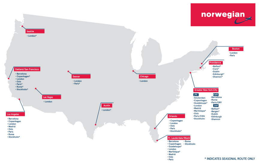 Low-cost carrier Norwegian continues to expand its foothold in the US even though it faces serious financial issues. The airline announced yesterday that it will be launching three new routes between Florida and Europe: