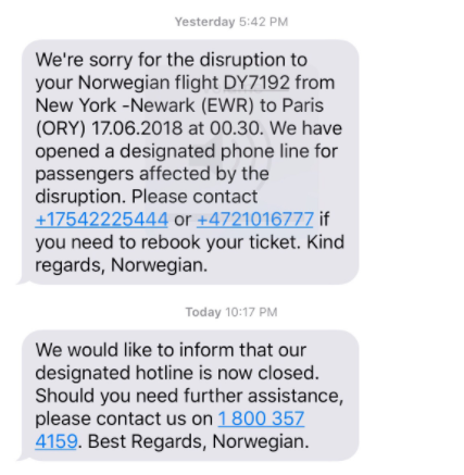 Not only have the cancellations been numerous, but there have been severe customer service issues for passengers trying to rebook. Norwegian opened up a customer service line to accommodate canceled passengers, and then suddenly closed it with no warning, as this screenshot from a TPG reader shows: