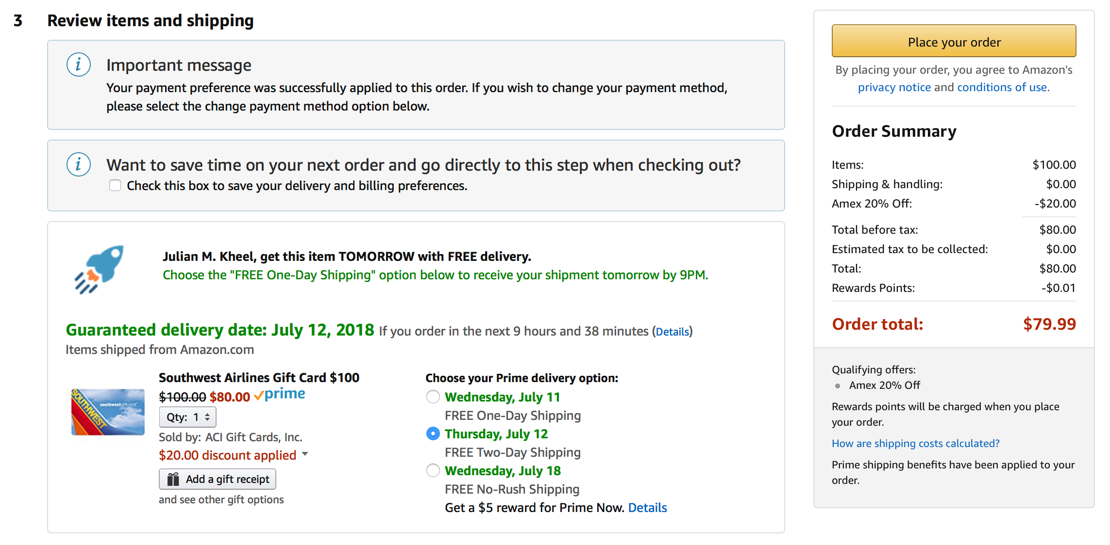 Last Tuesday, Amazon launched a terrific discount offer tied to its upcoming Prime Day on July 16. By applying just one American Express Membership Rewards point to your order of qualifying items, targeted shoppers are able to get 20% off just about any purchase.