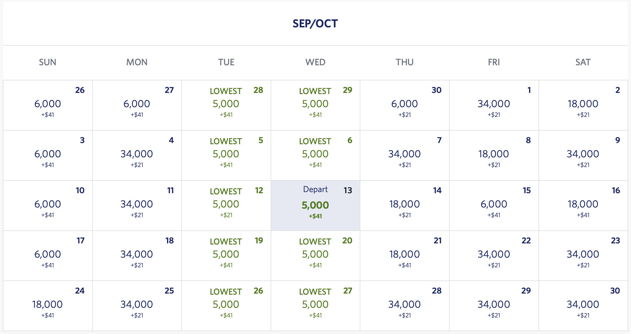 Looking even later in the year, we're finding similar pricing in late-September and October: