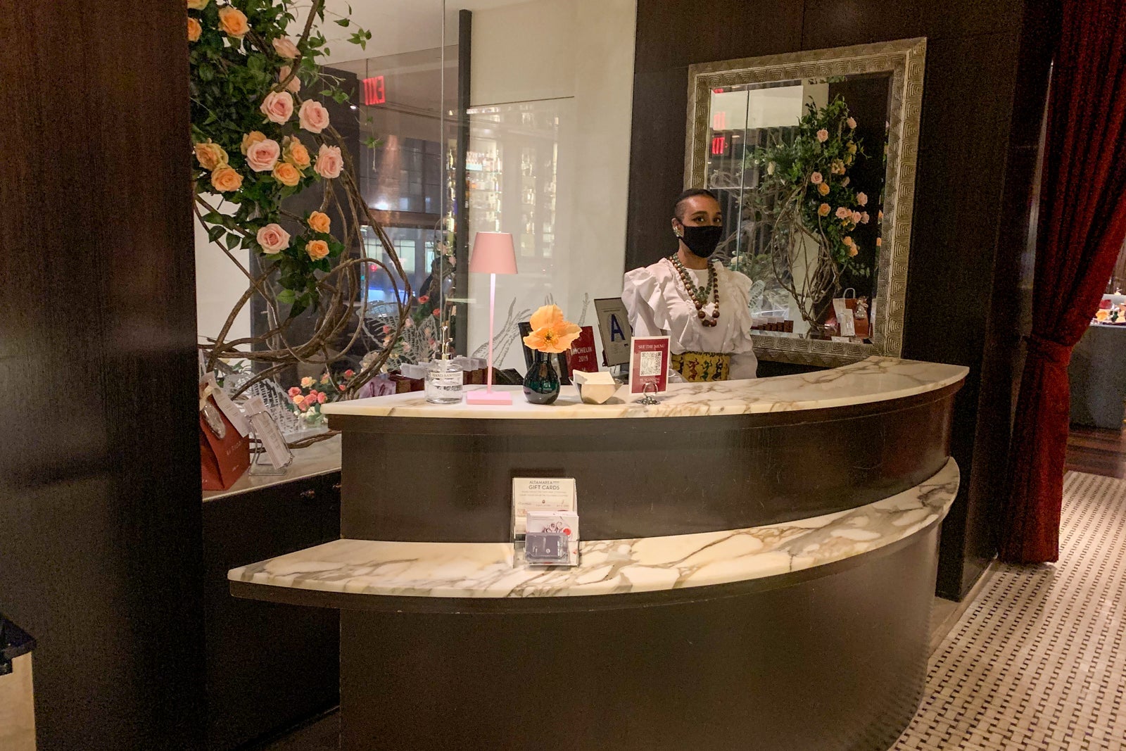 Closures and off-limits spaces: None. Room service was available via the hotel's house menu and that of the on-site Soho Diner, a posh version of an NYC greasy spoon that's anything but. I opted for the former and selected standard hotel fare, including a cheese plate, burger and craft beer. I was surprised -- and slightly alarmed -- to see the hotel's Grand Bar and Lounge filled with unmasked guests during our visit. It's a beautiful space with tall pillars, handsome leather couches and dramatic flower displays, so the appeal is strong. But I wasn't tempted to take the risk. New York State's current COVID-19 regulations allow indoor dining during, with capacity limits.