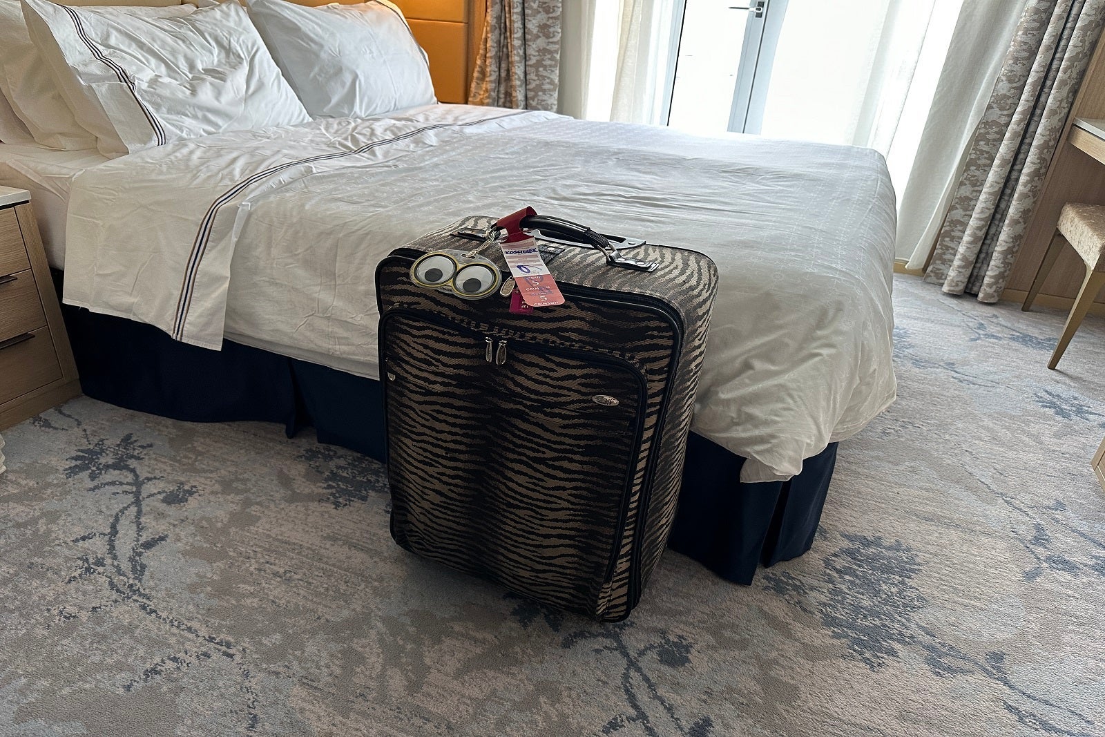 It was only a three-day voyage, but that didn't stop me from packing my tiger-print luggage like I was permanently relocating. The irony is that the airline lost the bag, so it never actually made it to the ship. (See below.)