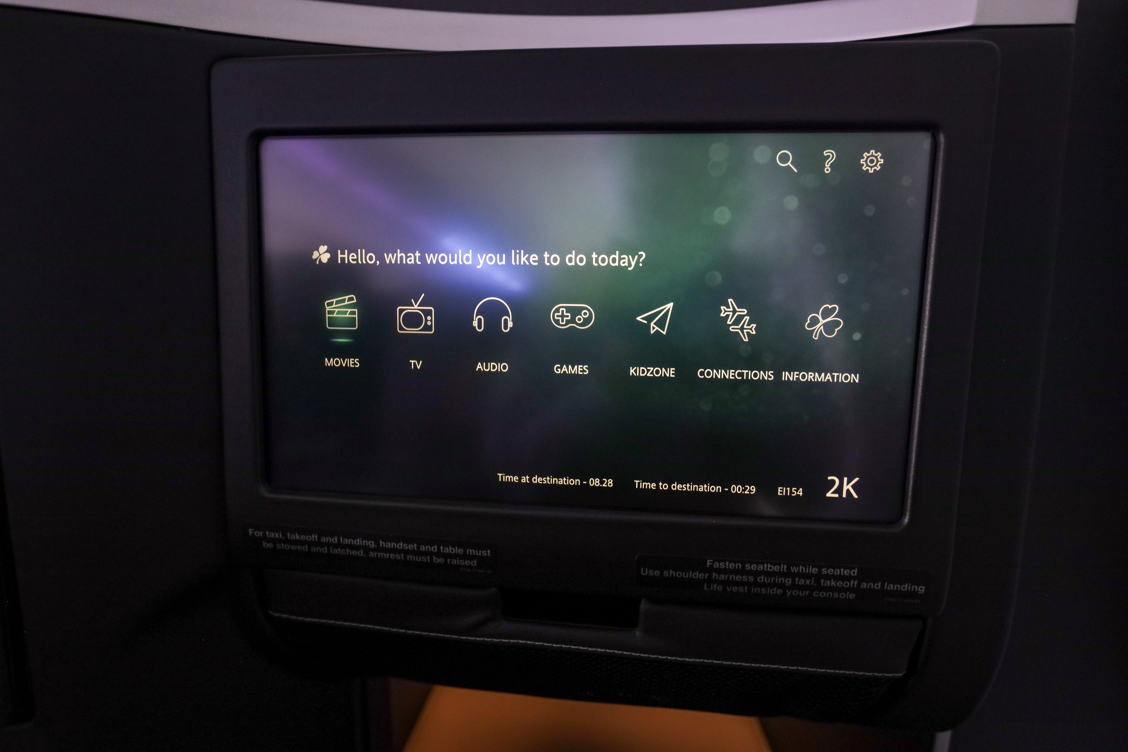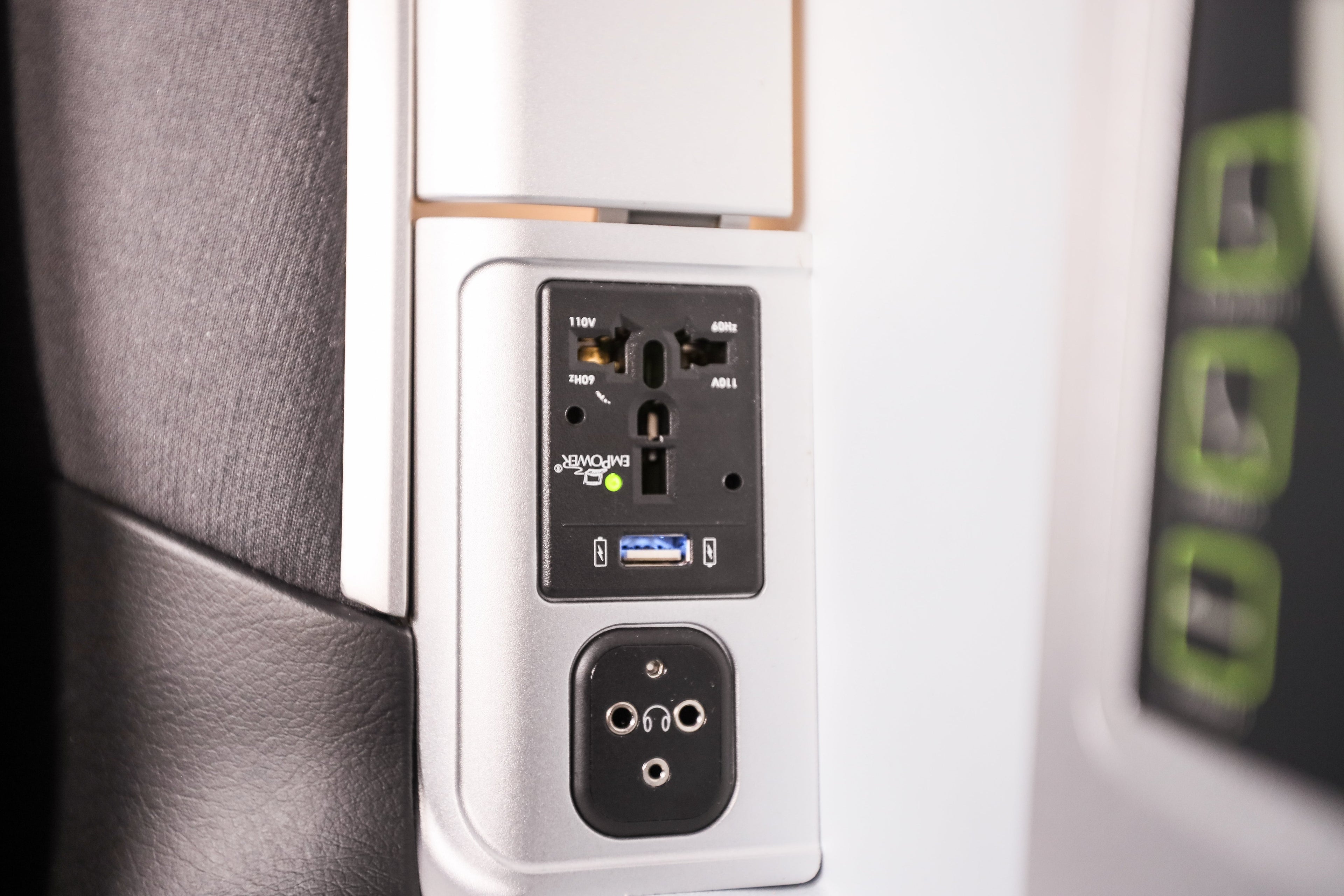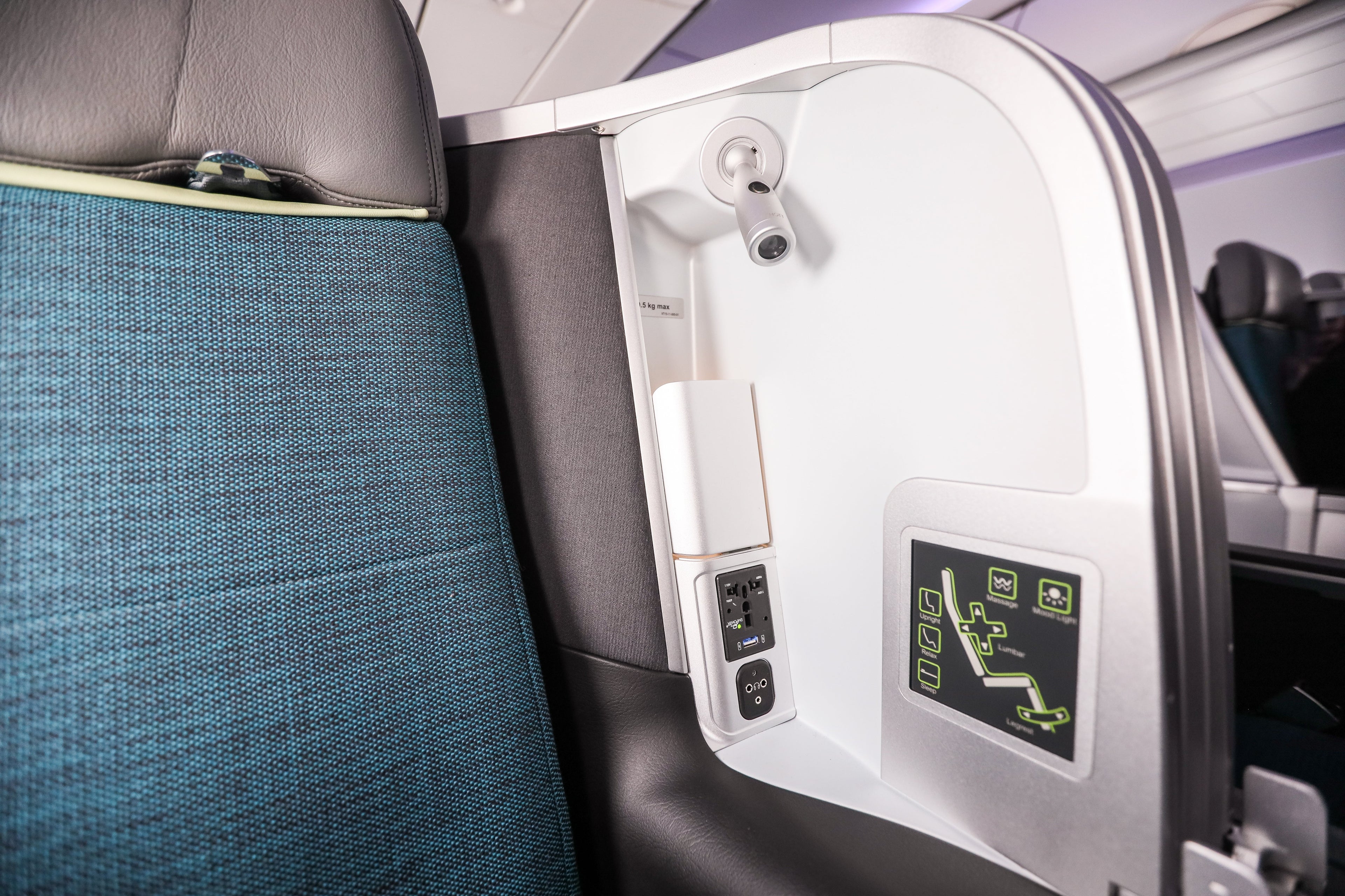 The seat also features an over-the-shoulder seat beat, an adjustable reading light, two seat control panels, a universal power outlet and USB port and a handheld controller for the IFE — although operating via touch screen was far simpler.