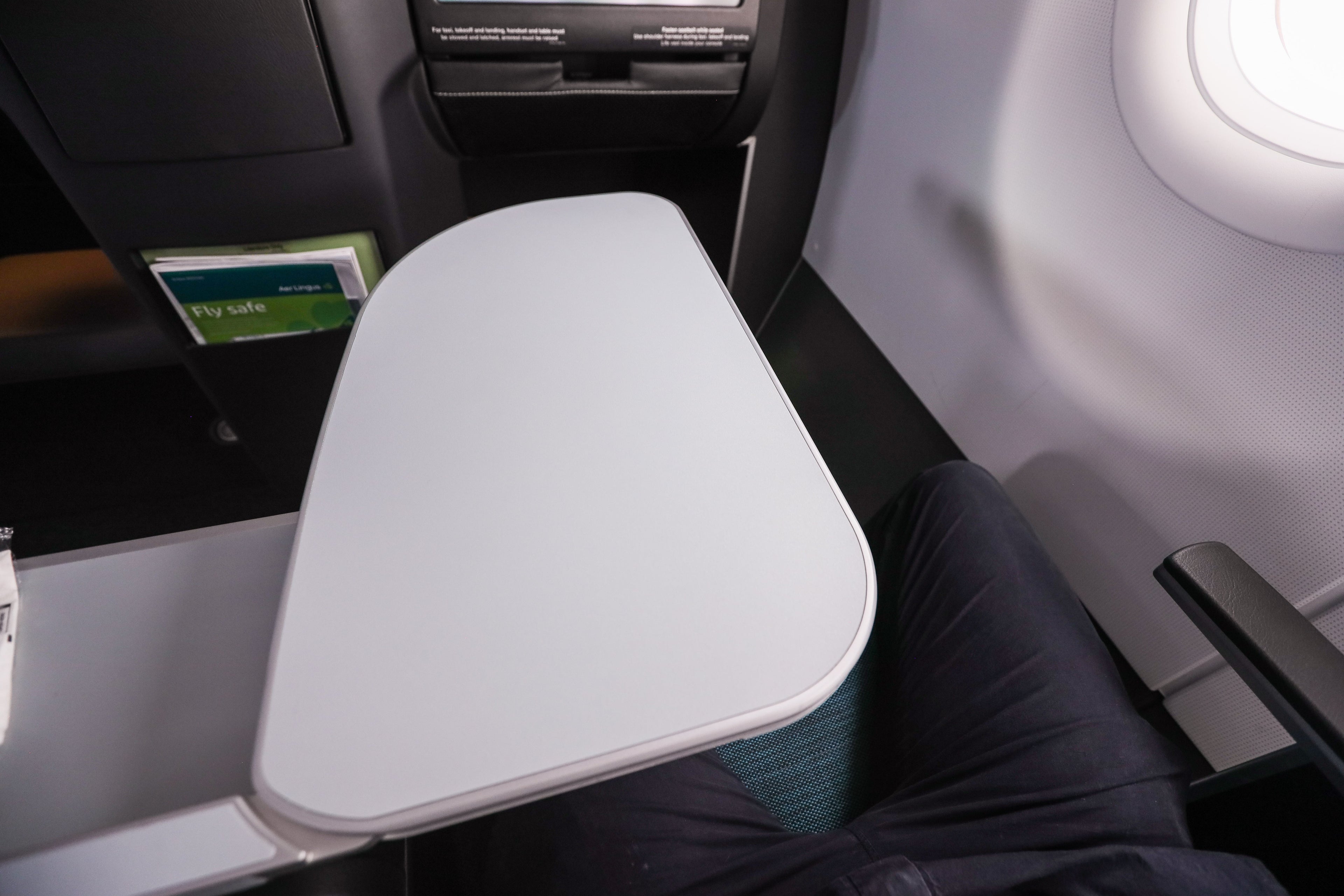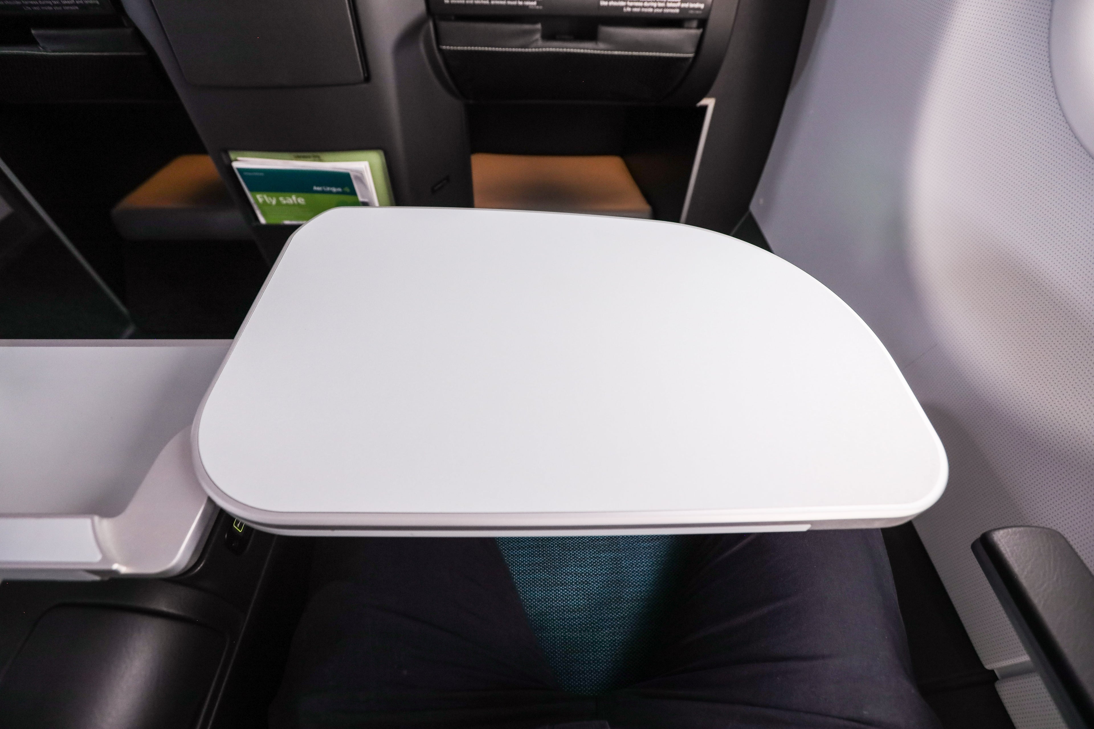 In the throne seats, there is plenty of of flat space for working, drinks and ad hoc storage. Seats in even-numbered rows with a set of two seats have significantly less flat space — just a shared armrest and small tray for drinks.