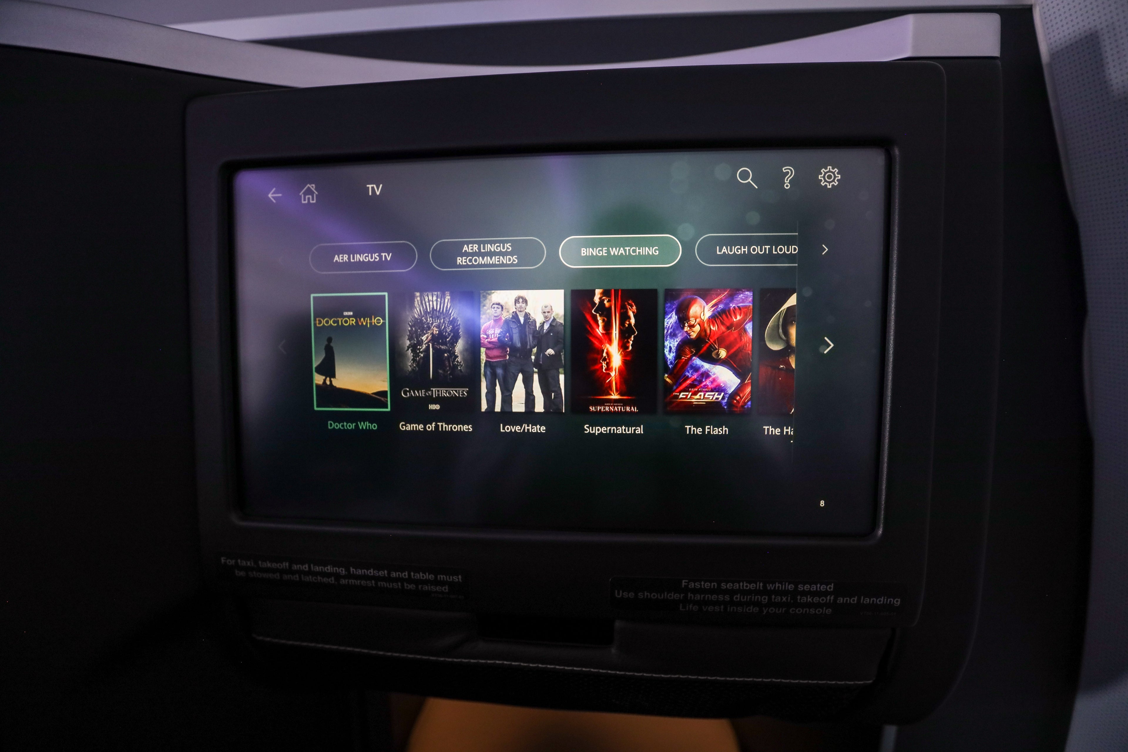 The touchscreen inflight entertainment system was operational on this short flight, but the selection left something to be desired. There were only eight movies on offer, although there was a more substantial TV offering. It may be that on longer flights, the airline loads a wider selection of films.