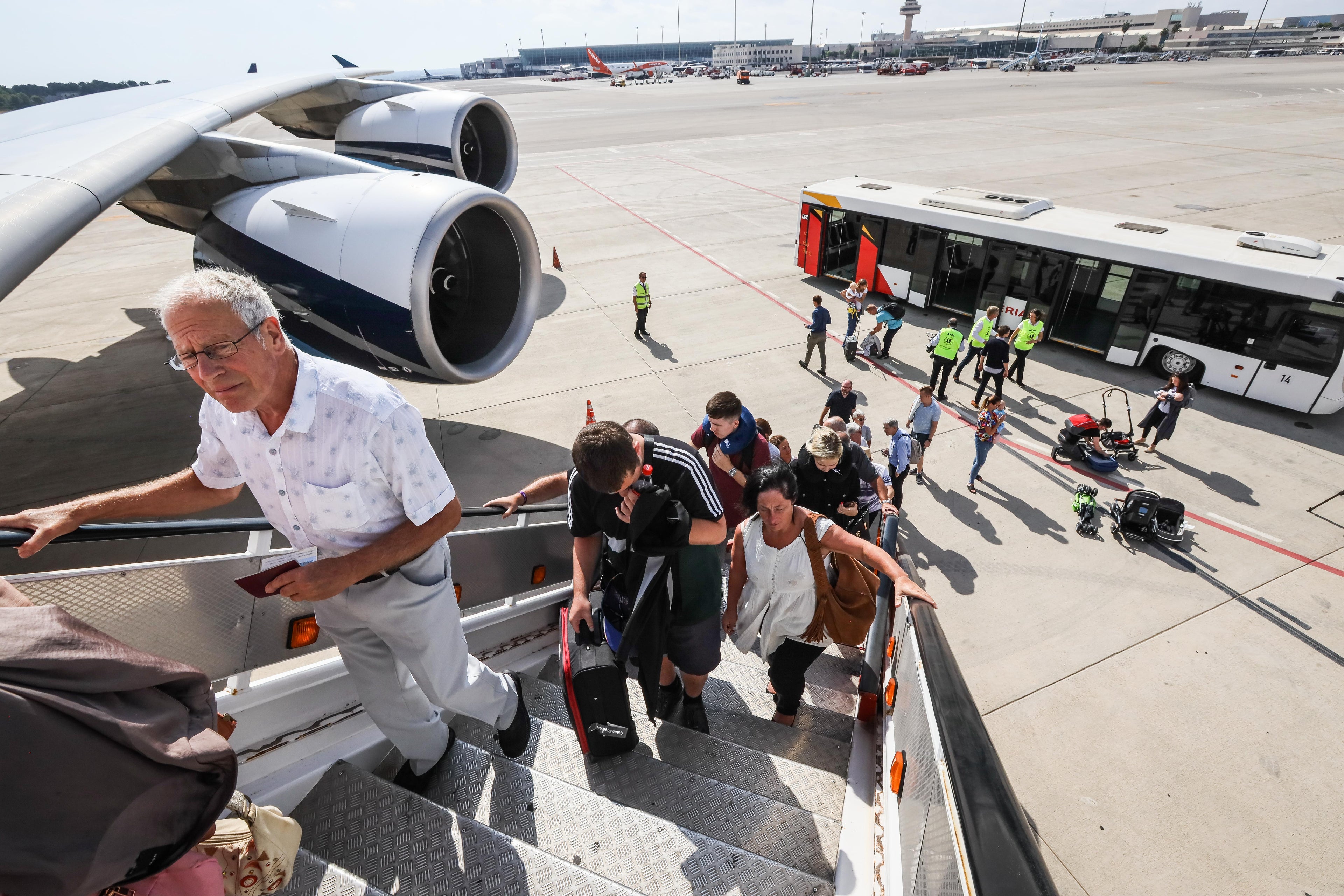 In my experience on Tuesday's flight from PMI to MAN, travelers were bussed to a remote stand, with many gawping at the sheer size of the plane as the doors of the bus opened. The gawping continued as passengers took their seats.