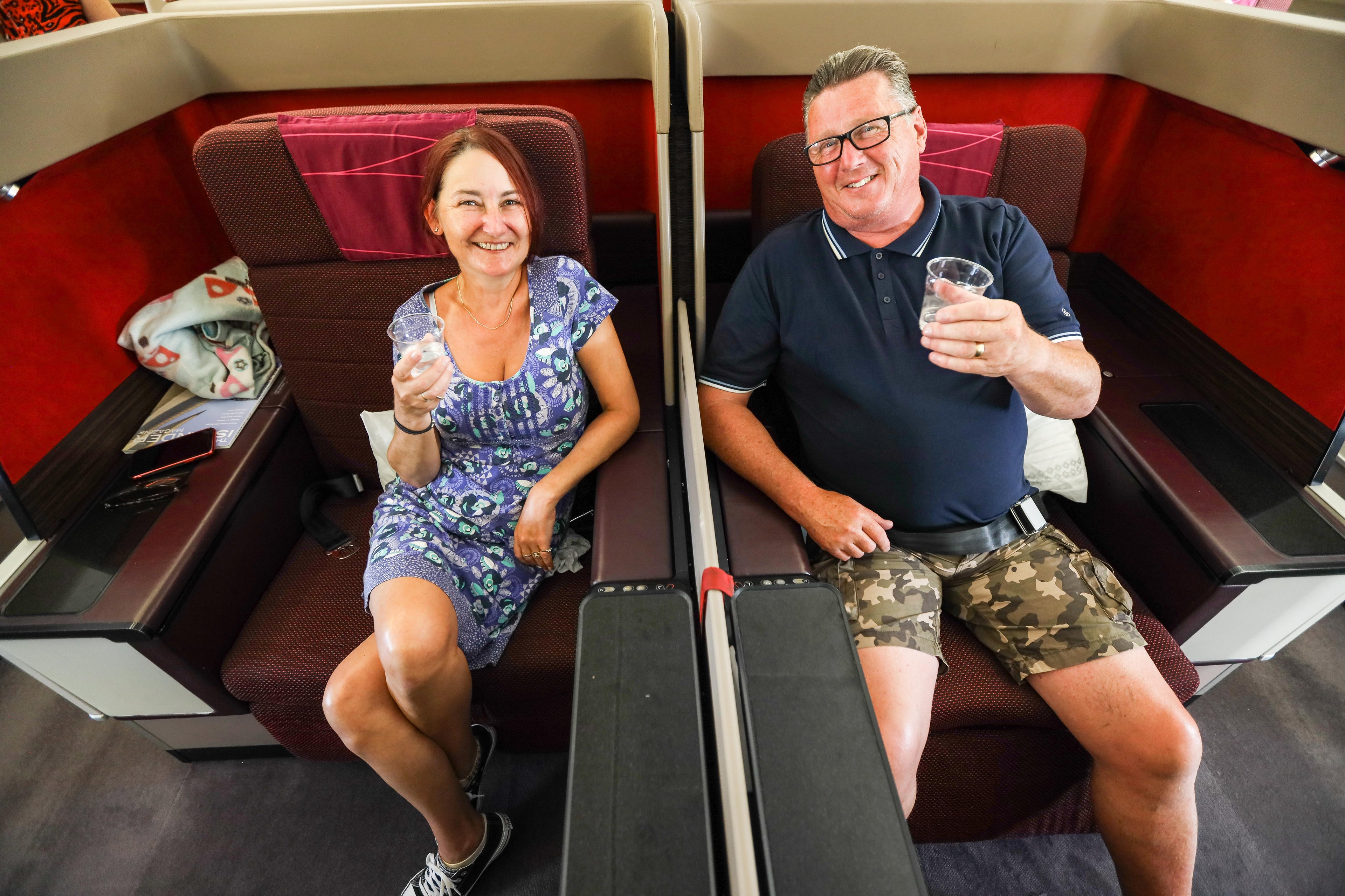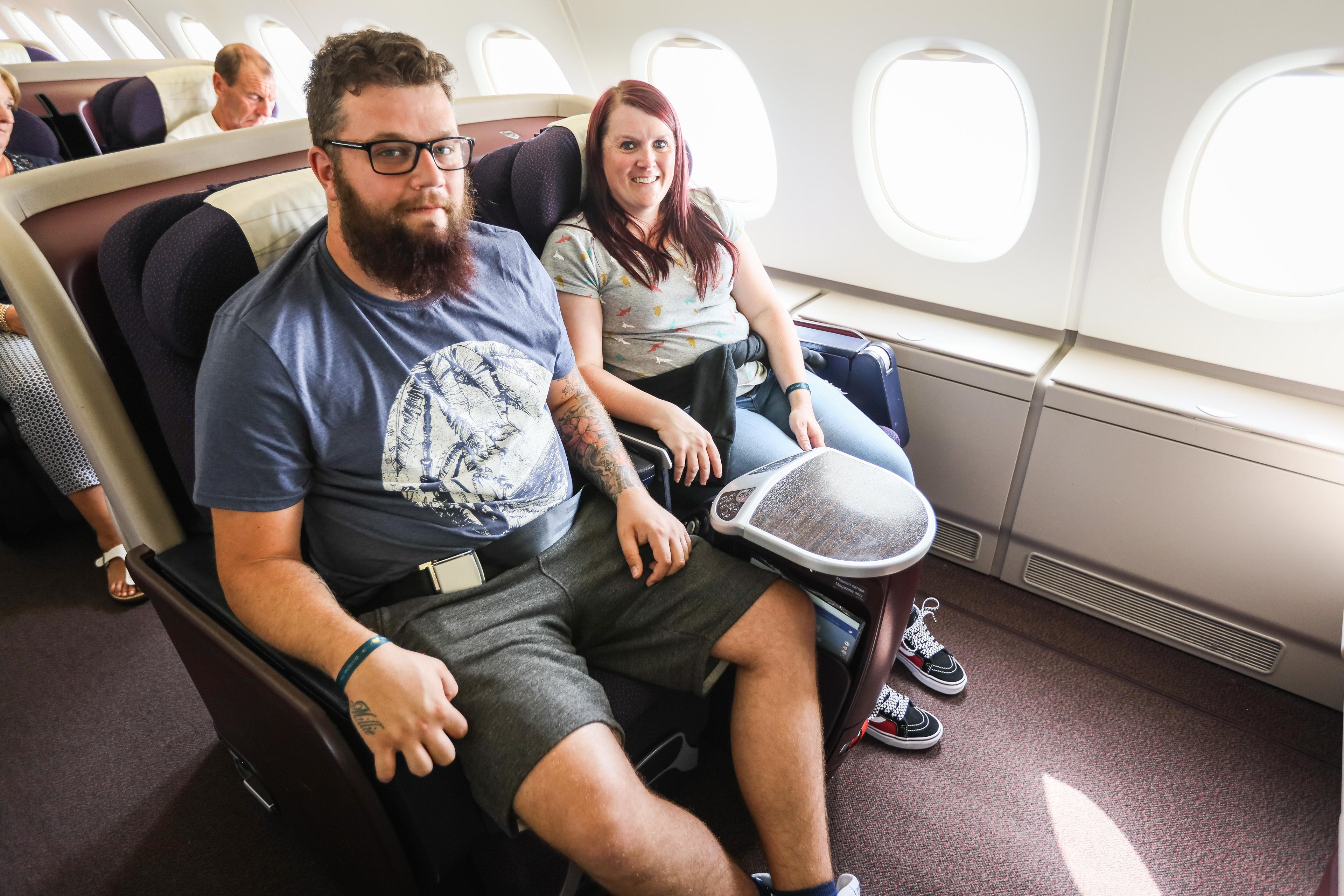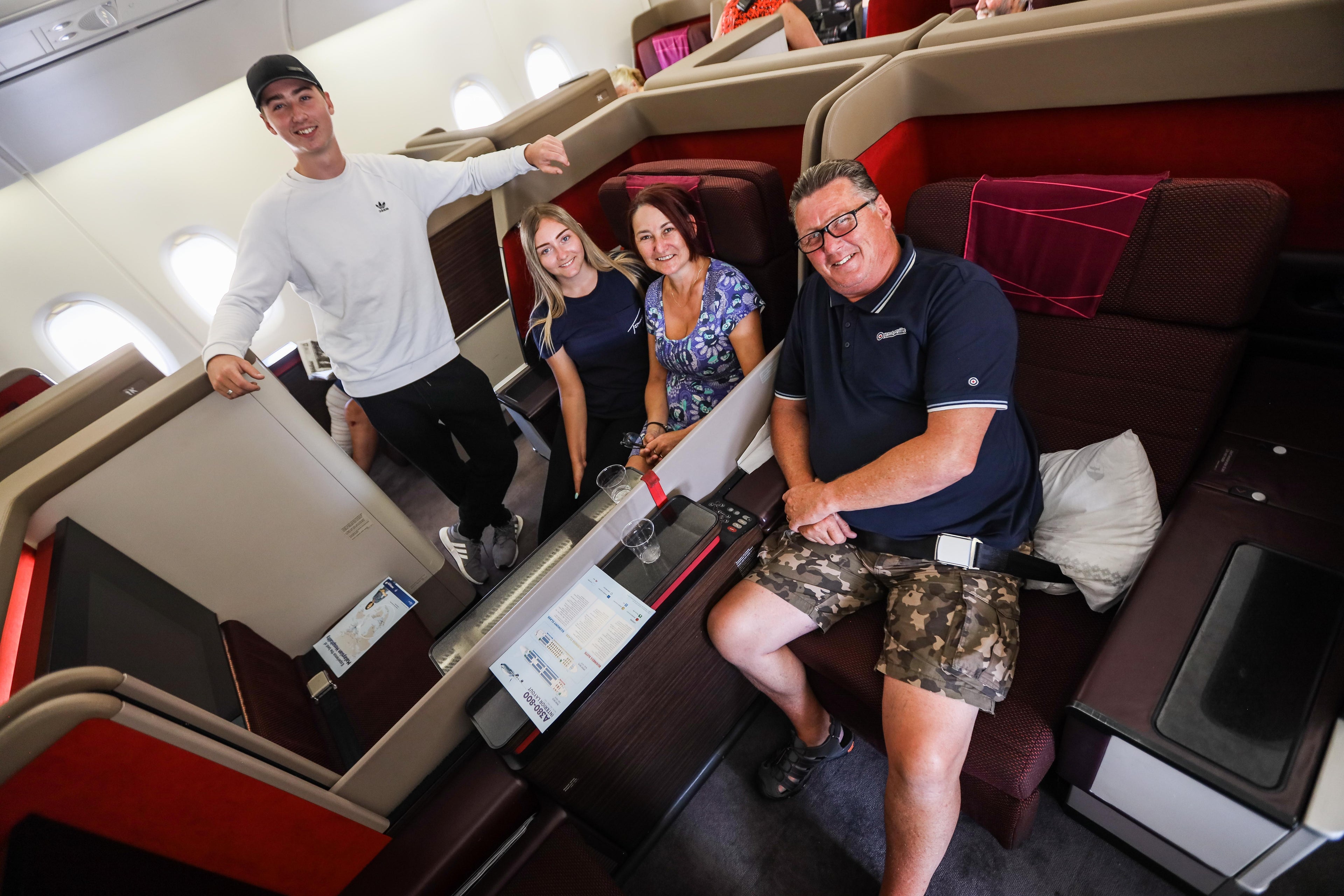 One of the most fascinating aspects of this repatriation flight was the fact that seats were selected for passengers at random throughout the aircraft and cabins. Families originally booked to fly down the back of a narrow-body Thomas Cook plane found themselves in the lap of luxury on a seat that converted into a lie-flat bed.