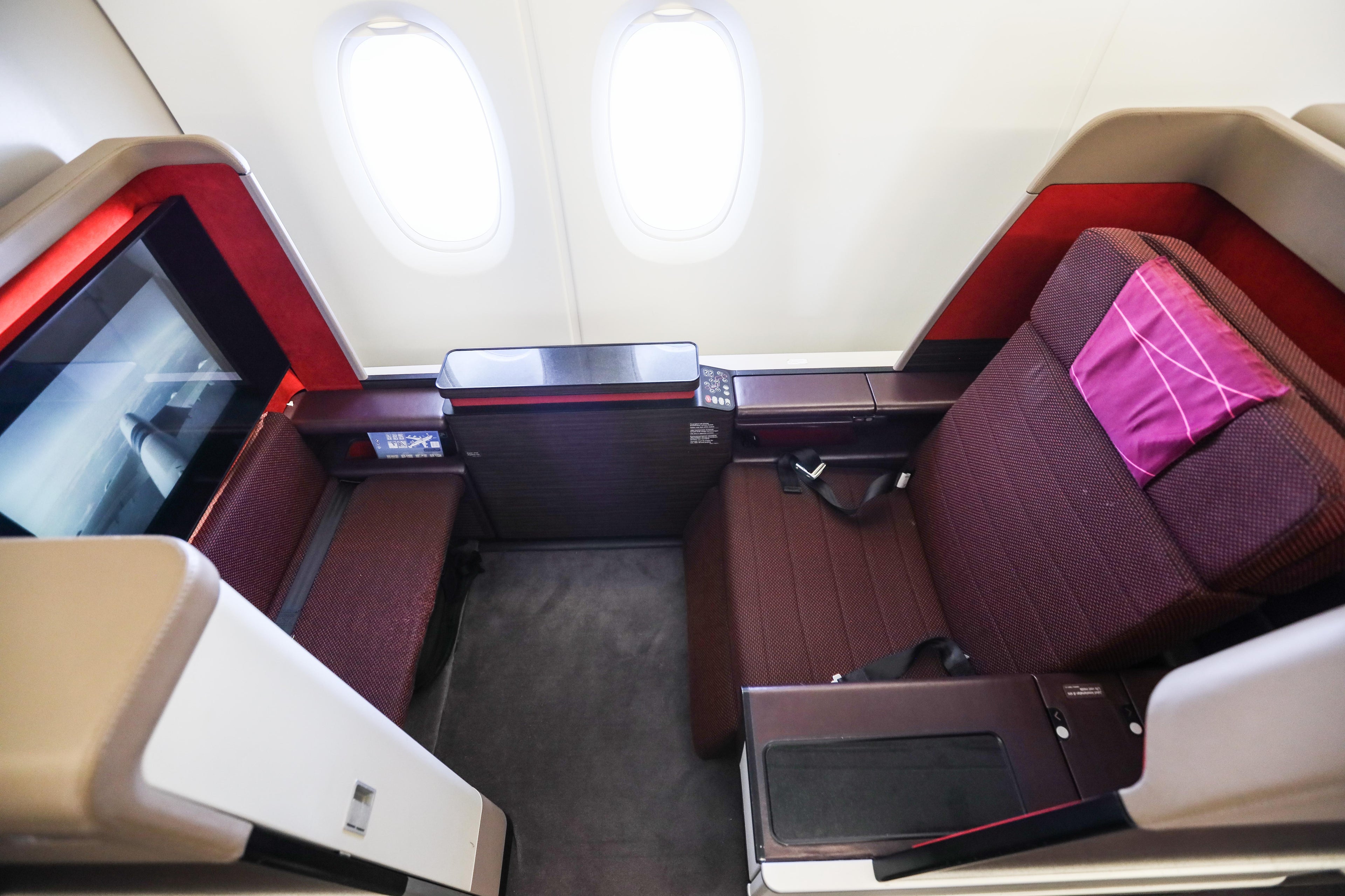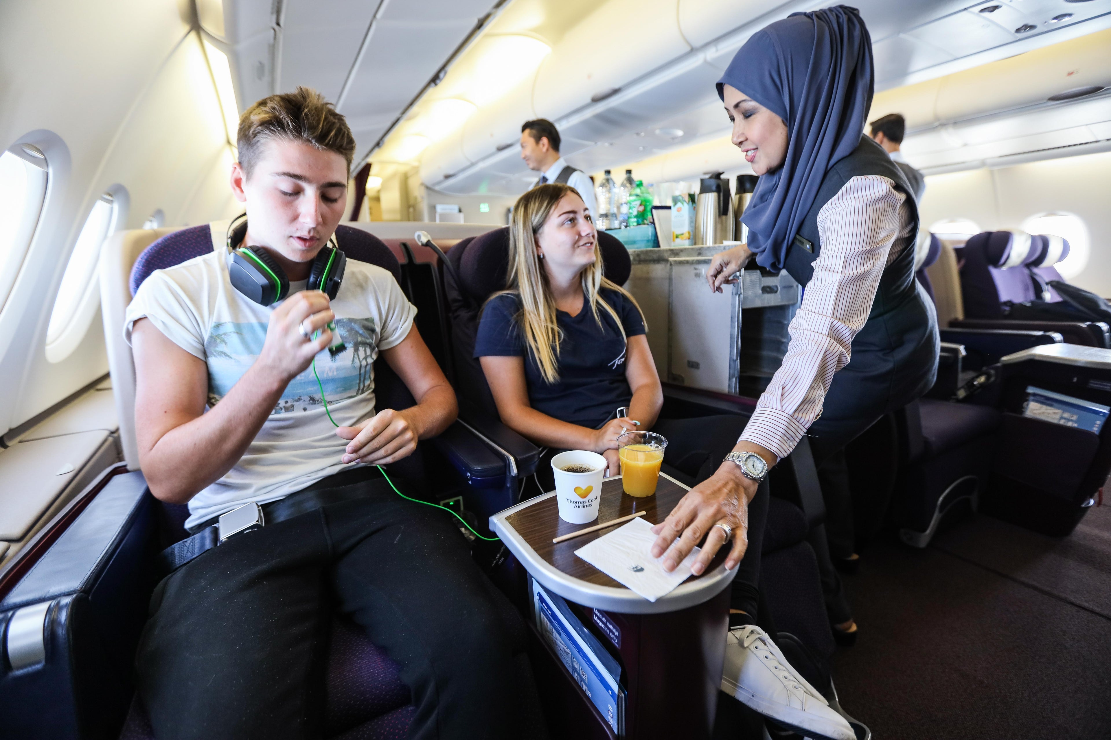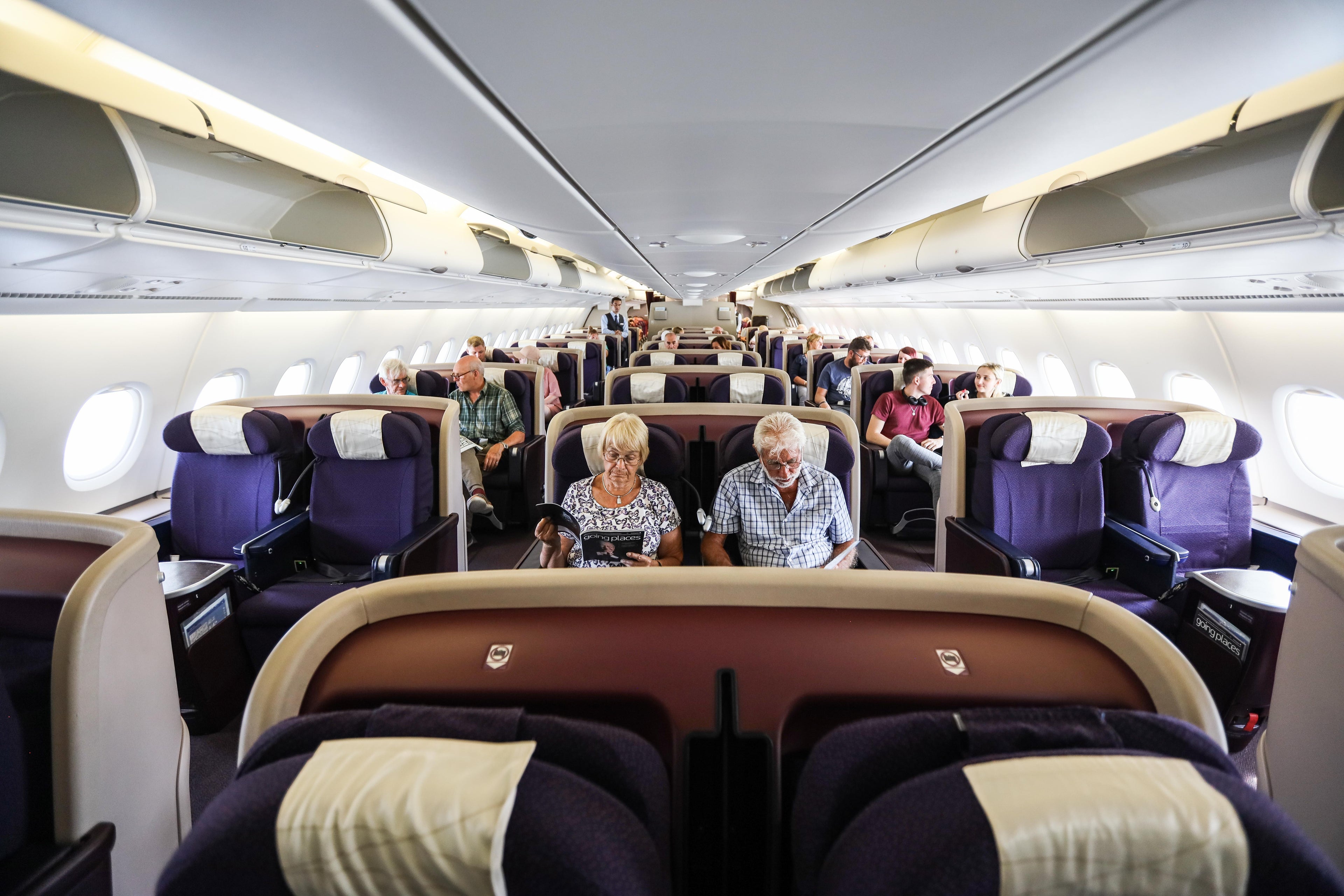 One of the most fascinating aspects of this repatriation flight was the fact that seats were selected for passengers at random throughout the aircraft and cabins. Families originally booked to fly down the back of a narrow-body Thomas Cook plane found themselves in the lap of luxury on a seat that converted into a lie-flat bed.