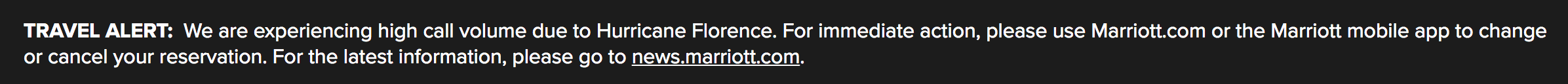 To be clear, I recognize that hold times are likely even worse right now due to the impacts of Hurricane Florence, which Marriott acknowledges on its homepage. However, these wait times were being reported long before the storm began impacting travel in the US.