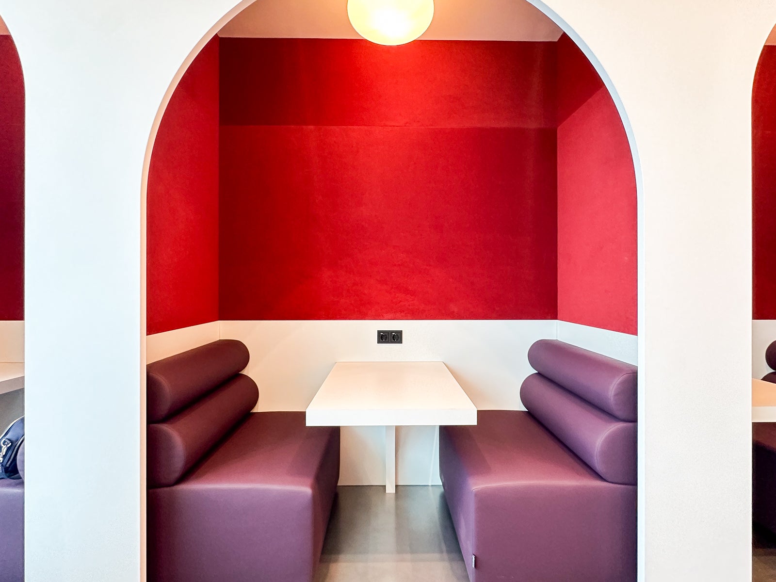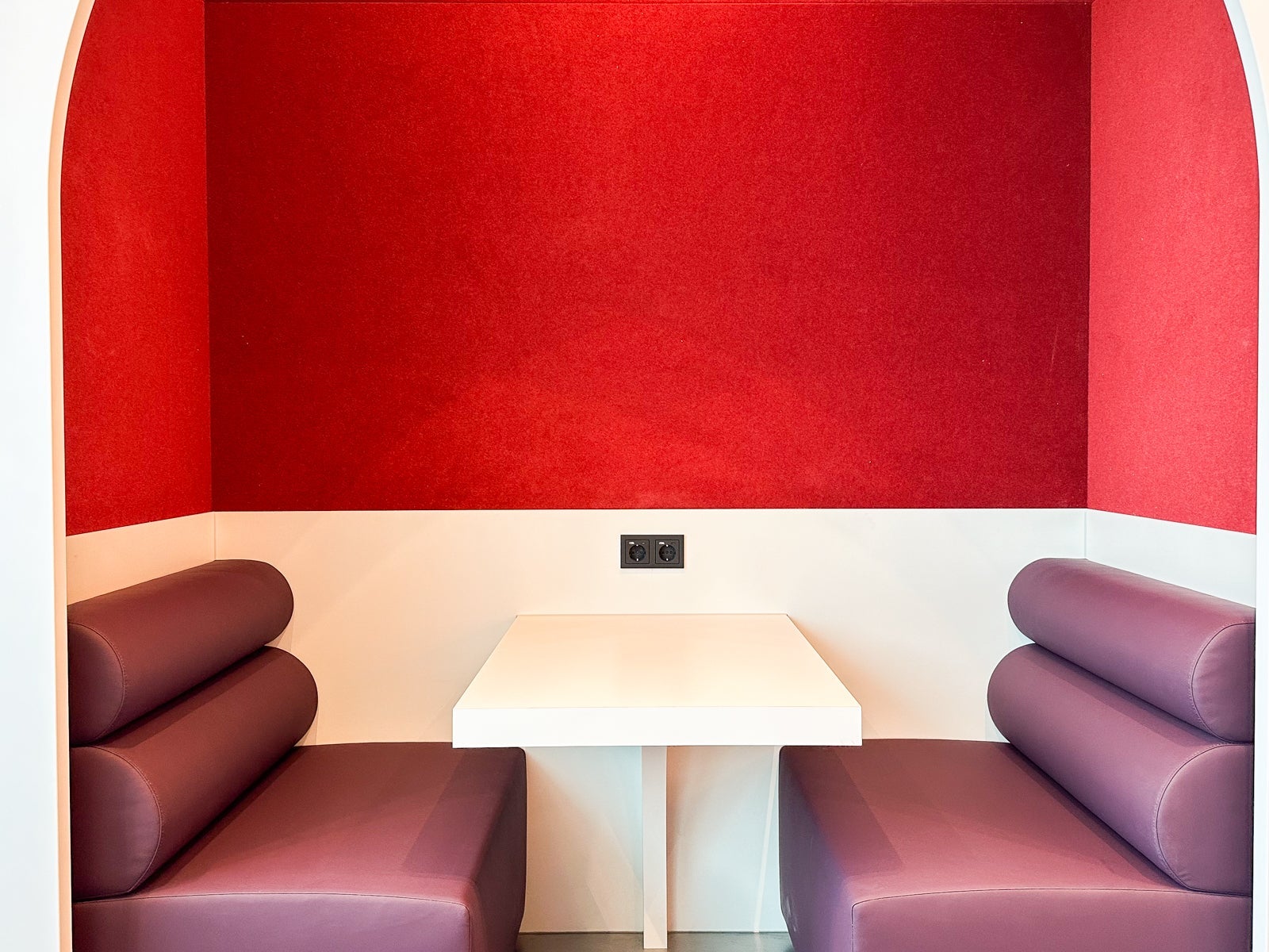 Various booth-style seating areas are available, too — great for working, taking meetings or calls, or eating with friends and family.