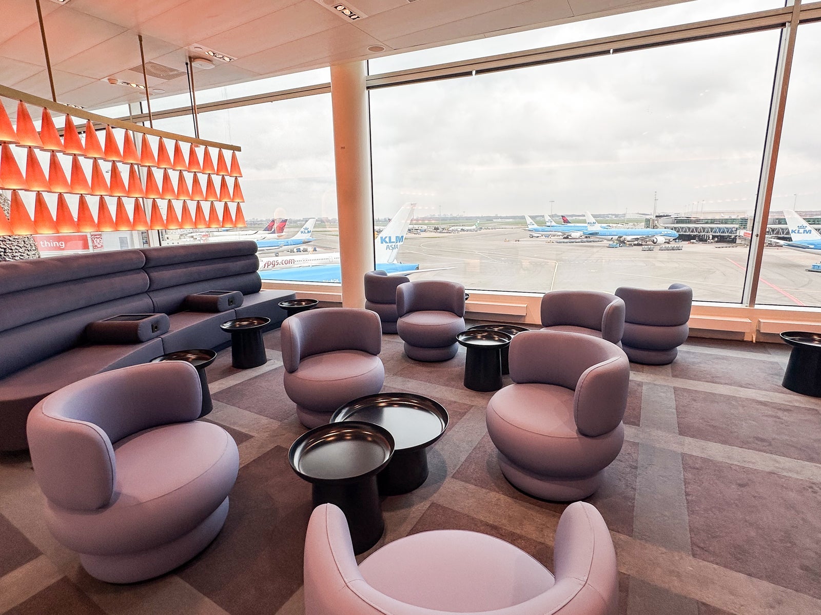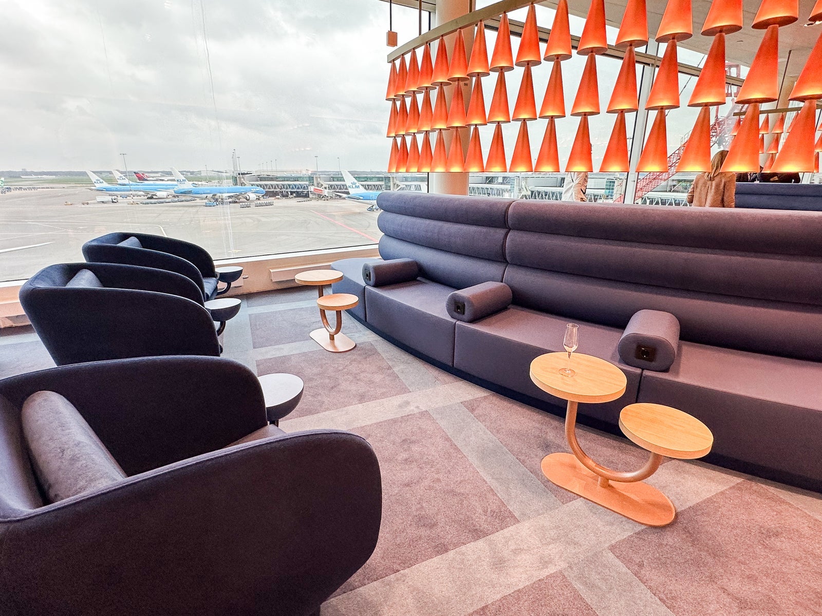 There are also some quirky sections, like this funky area right at the back with individual armchairs that, quite bizarrely, face the wall rather than the stunning views of the apron and runways. (Take note of those, aviation geeks.)