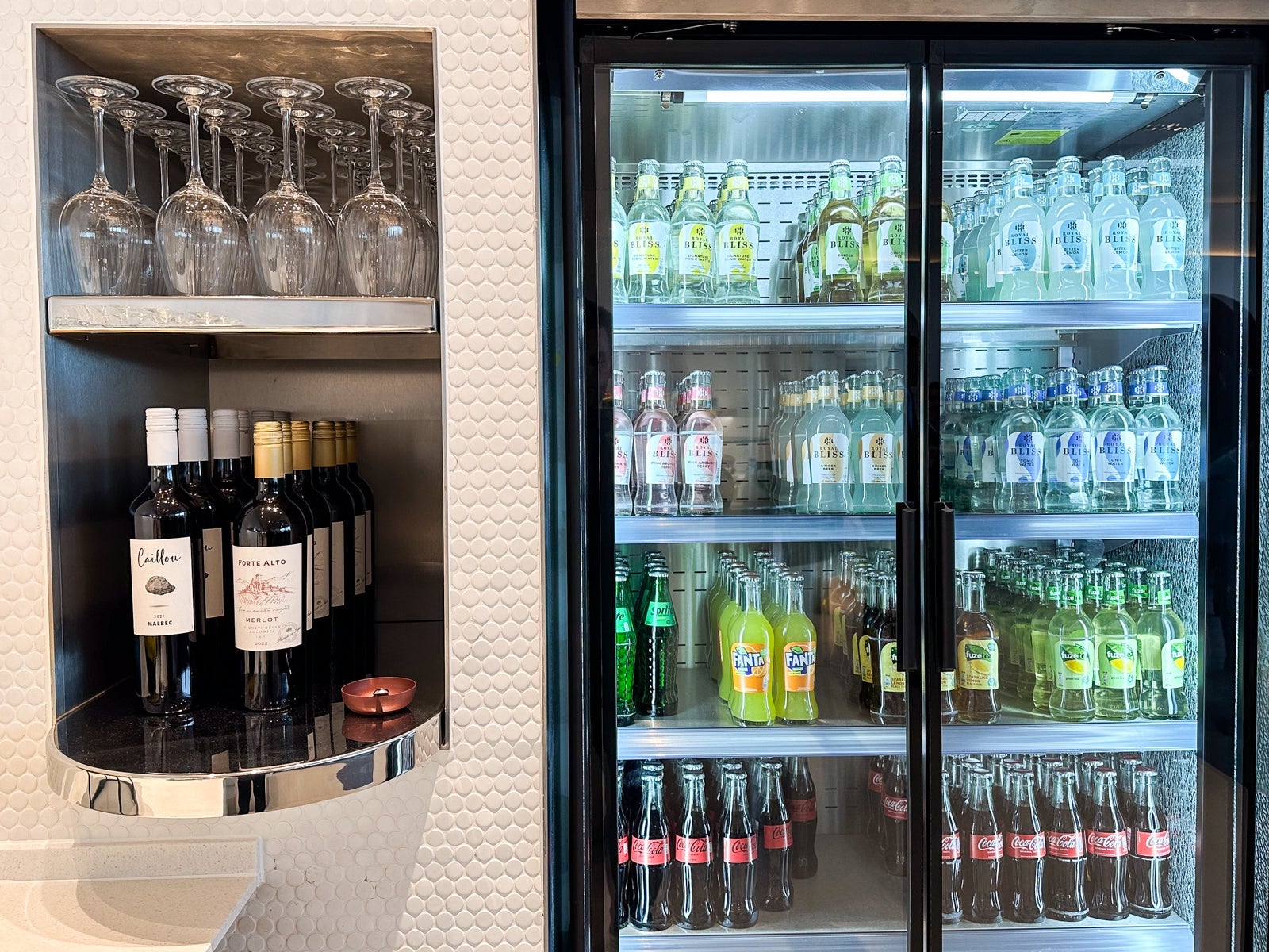 The drinks were not yet fully stocked during our tour, but we were told there would be a full range of complimentary beers (including Amstel and Heineken on tap), wines and spirits (think Bombay Sapphire and Jack Daniel's). There are also multiple bean-to-cup coffee machines throughout the lounge.