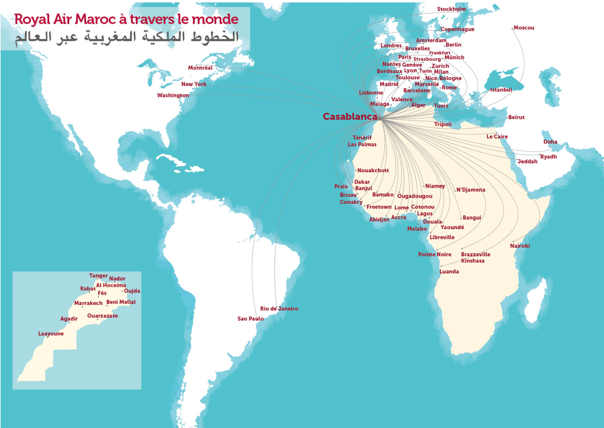 The airline's appeal for Oneworld, which has no members in fast-growing Africa, might lie chiefly in its West African network, served with a relatively big fleet of 37 Boeing 737s. The airline's route map highlights RAM's presence in West Africa, from its hub in Casablanca (CMN).