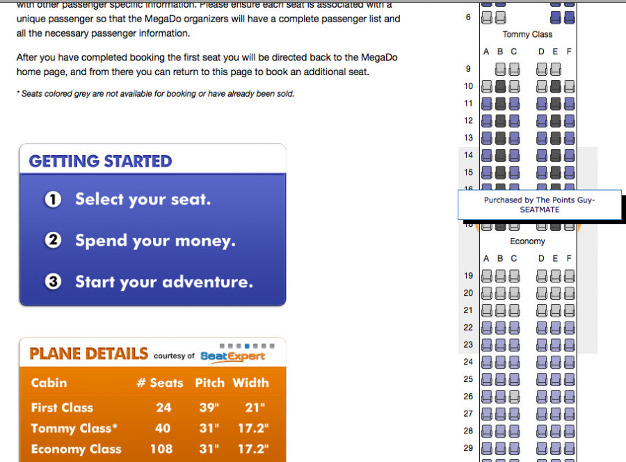 Since my new site travelcreditcards.com is a sponsor of the event, I got to book my tickets early and test the site out and I have to say I'm impressed. There's an interactive seat map that will show who has already purchased seats, so you'll be able to see that I already bought two Tommy Class Exit Row seats. One for me and one for a seatmate (hint, hint ... there may be another contest coming!). Last time I flew first, but the party is in coach, so I'm looking forward to riding in the back of the bus this time around (though for the European portion I'll most likely spring for the discounted business class).