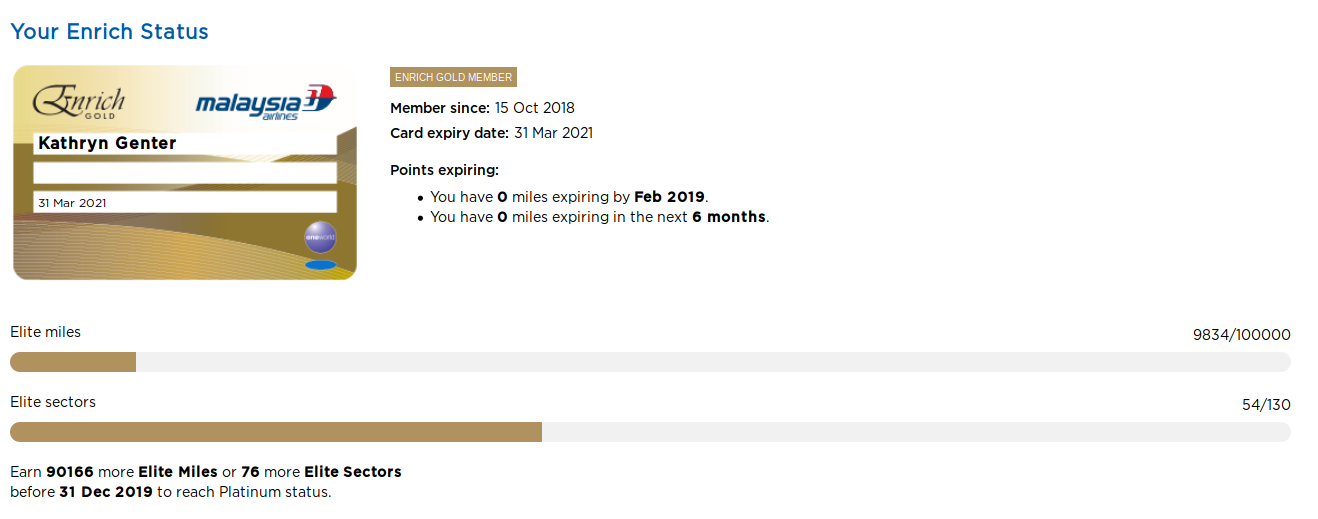 For this promotion, when we flew the flights was important. If we'd flown all the flights in 2018, we only would have kept Enrich Gold through Mar. 31, 2020. And if we'd flown some flights in 2018 and some in 2019, we wouldn't have earned Enrich Gold. By flying all of the flights early in 2019, we'll keep the status through Mar. 31, 2021.