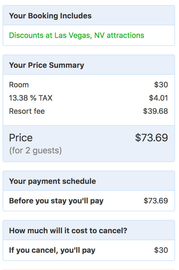 In recent years, resort fees have only become worse. They have increased in amount, spread to properties that are decidedly not resorts, been renamed ("destination fees"), and are sometimes even charged per person instead of per room. Resort fees can cost more than the room rate itself, especially at some of the more budget hotels in Las Vegas. At some properties, they have already grown to more than $100 per night.