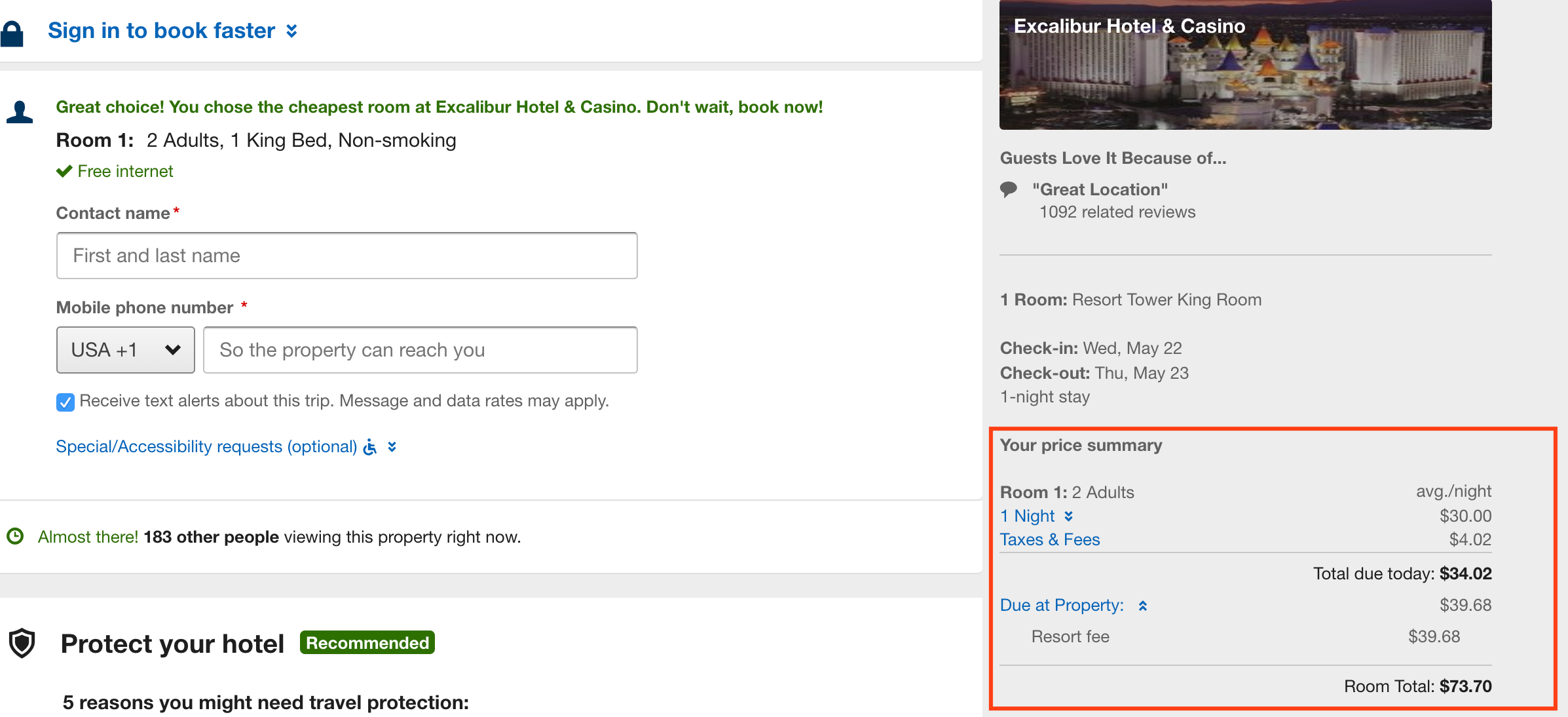 However, it is unknown if Booking.com's take will spread to the other OTAs — Online Travel Agencies — such as Expedia. Currently, Booking.com bundles the resort fee in the amount you pay to make the reservation online (when you have to pay in advance), whereas Expedia does not charge that portion of the reservation up front, though it is displayed in both cases in the booking breakdown.